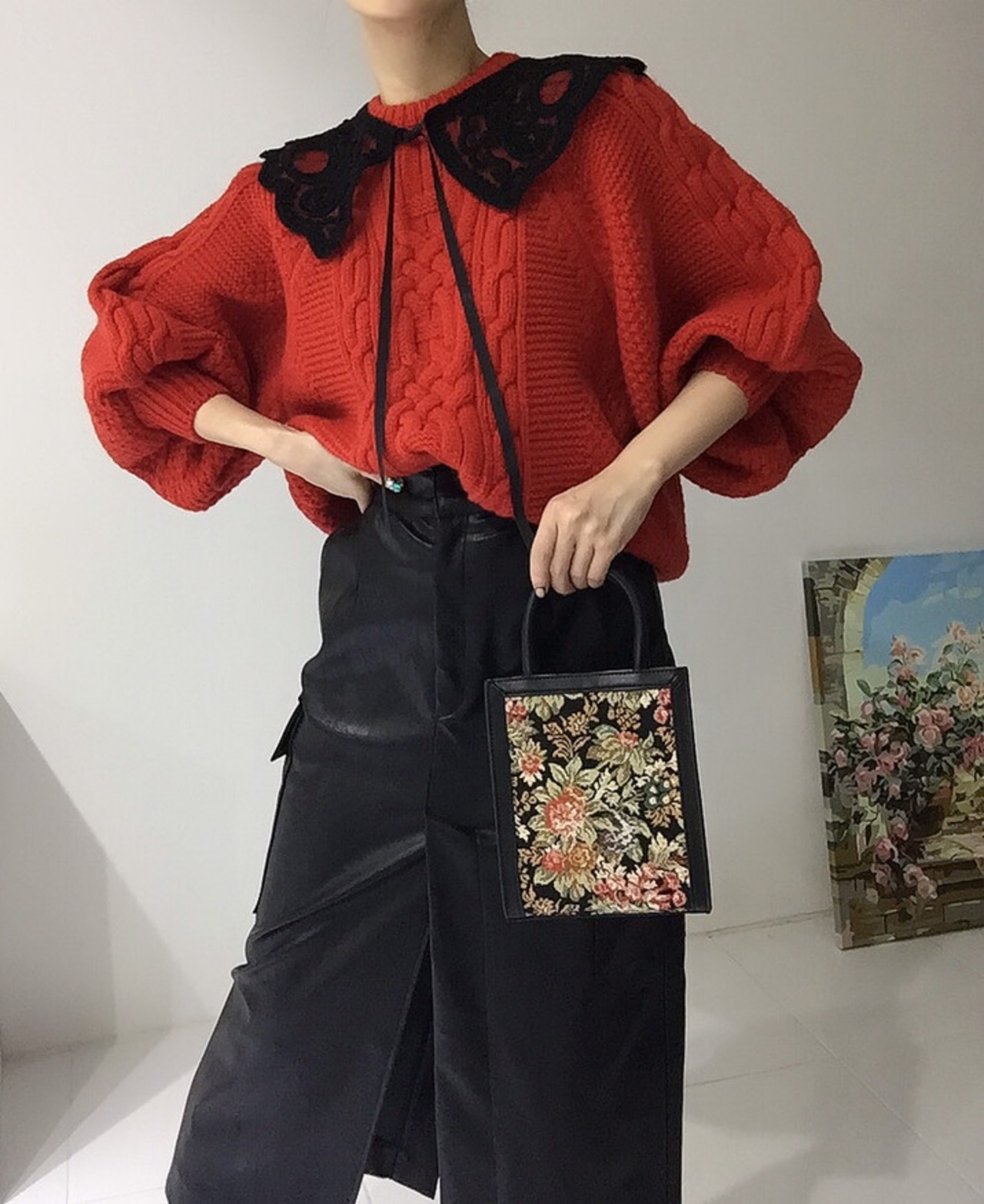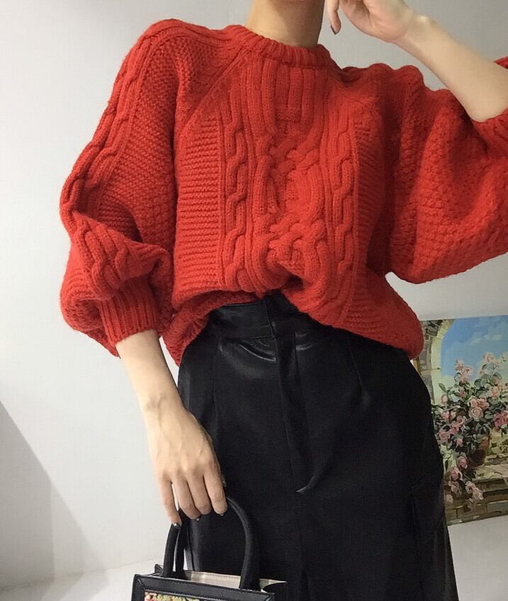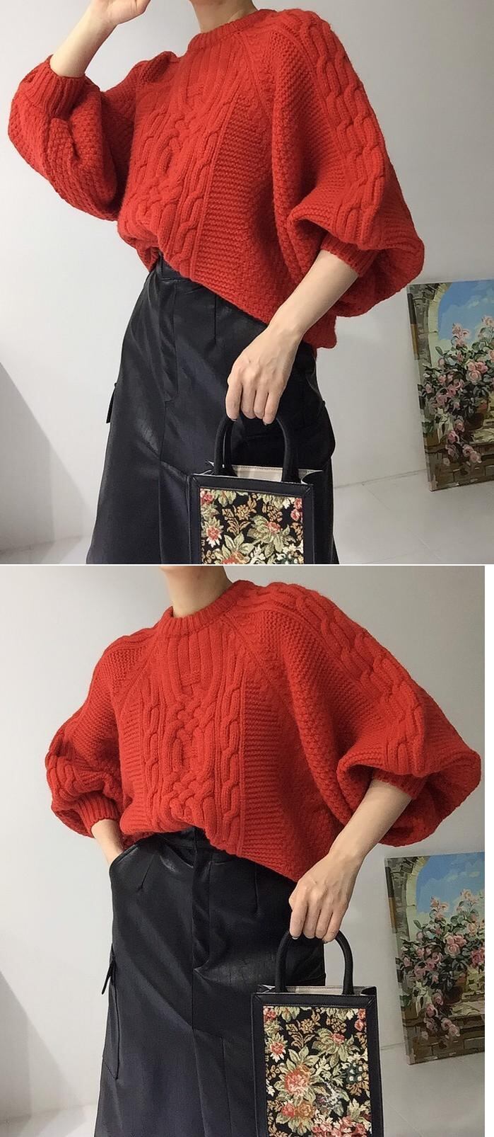 【韓国ファッション】大人可愛い スタンダードラウンドネックパターンルーズスリーブセーター レーススカーフ ランタンスリーブ レトロ Oネック ♡ 韓国22245686881 | パリジェンヌ、韓国系ファッション July