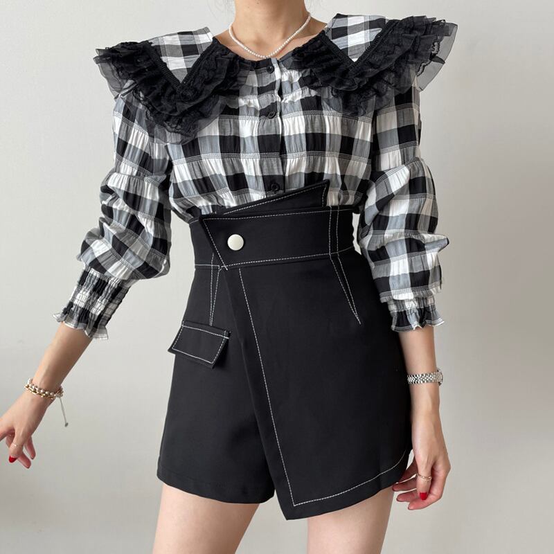 【韓国ファッション】大人可愛い スタンダードレースFlowerデザイン 格子柄ルーズスリーブシャツ レディース レトロ フラワーデザイン ステッチ ♡ 韓国43340993528 | パリジェンヌ、韓国系ファッション July