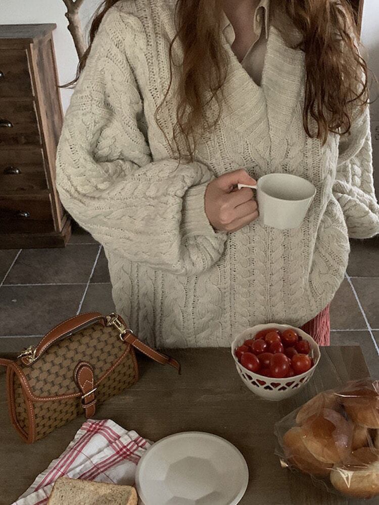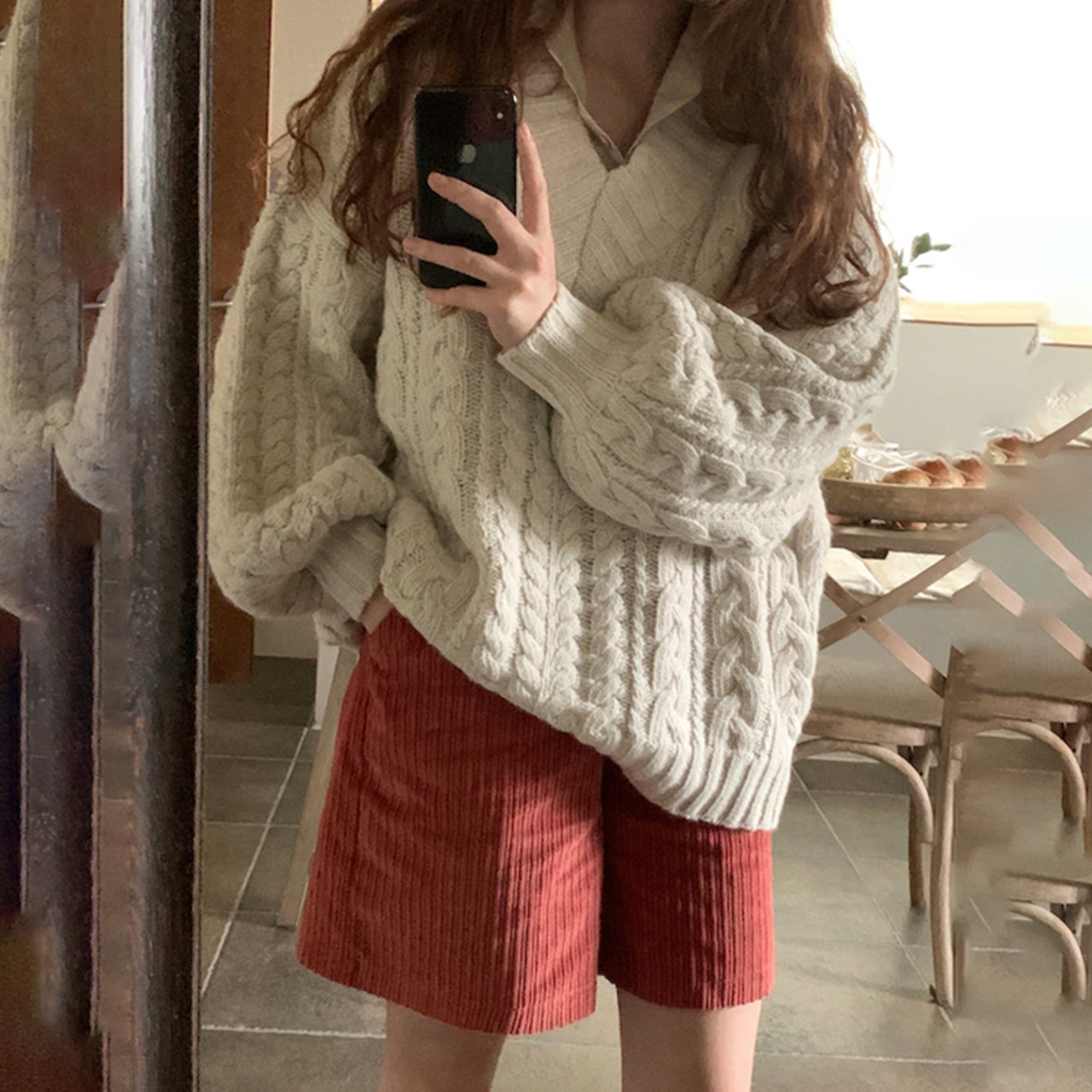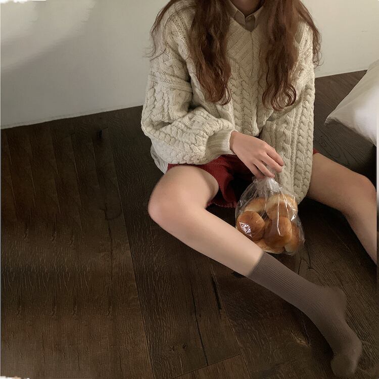 【韓国ファッション】大人可愛い スタンダードVネックパターンルーズニットセーター ハイウェストコーデュロイカジュアルショーツ ロング レトロ ブルマー ♡ 韓国75496106908 | パリジェンヌ、韓国系ファッション July