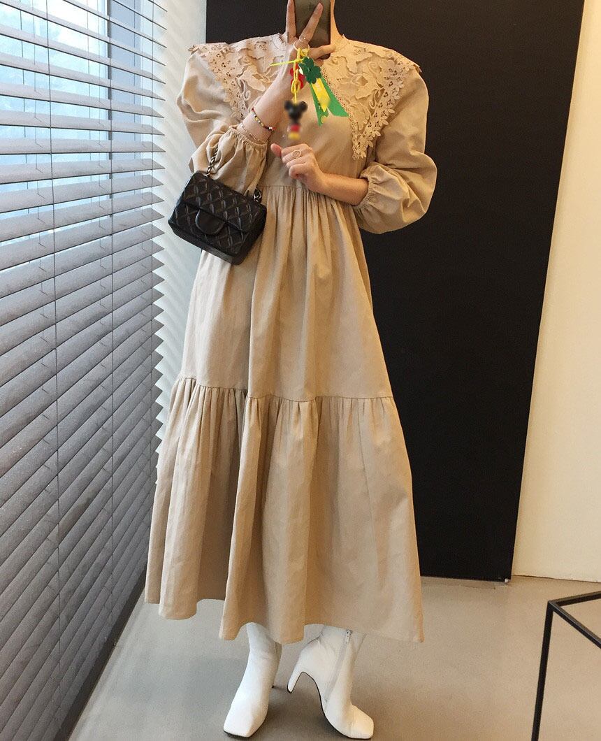 【韓国ファッション】大人可愛い オータムスタイルスタンダードFlowerデザイン ルーズスリーブドレス ロングスカート レトロ 秋物 フラワーデザイン ♡ 韓国80456057142 | パリジェンヌ、韓国系ファッション July