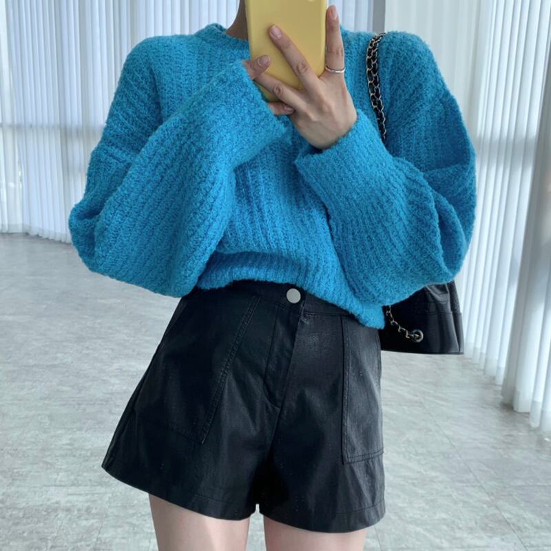 【韓国ファッション】大人可愛い カラーラウンドネックプルオーバー ニットセーター ハイウェストウェストダブルポケットレザーパンツ ショーツ ブルマー Oネック ♡ 韓国36224513610 | パリジェンヌ、韓国系ファッション July