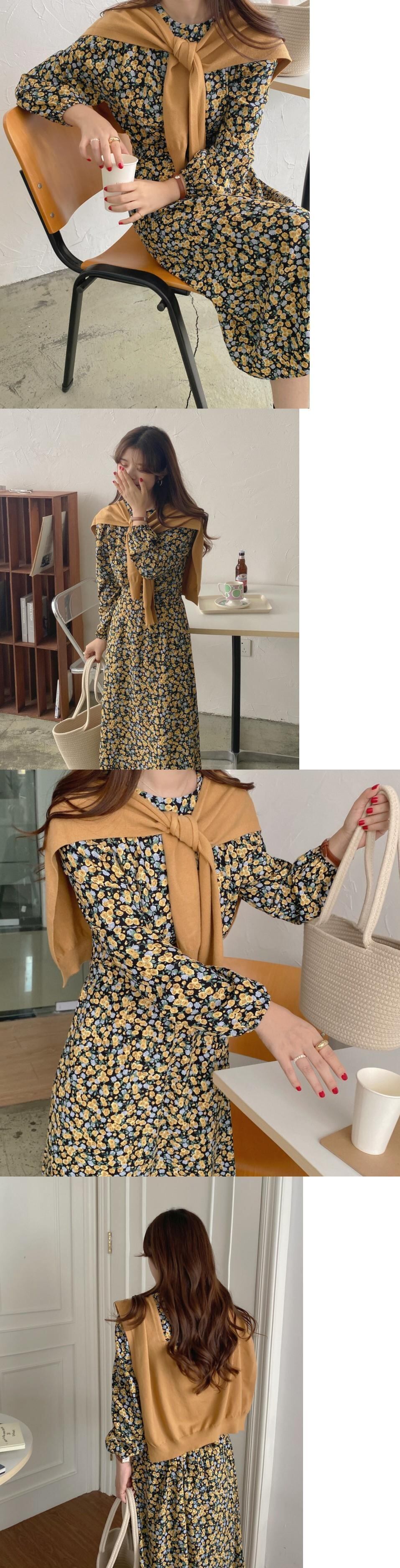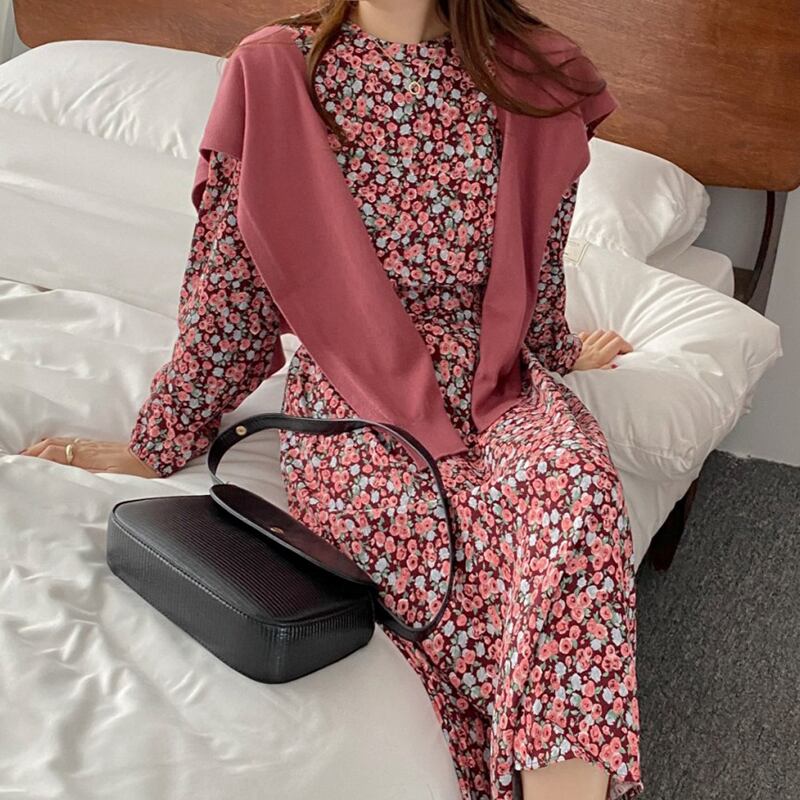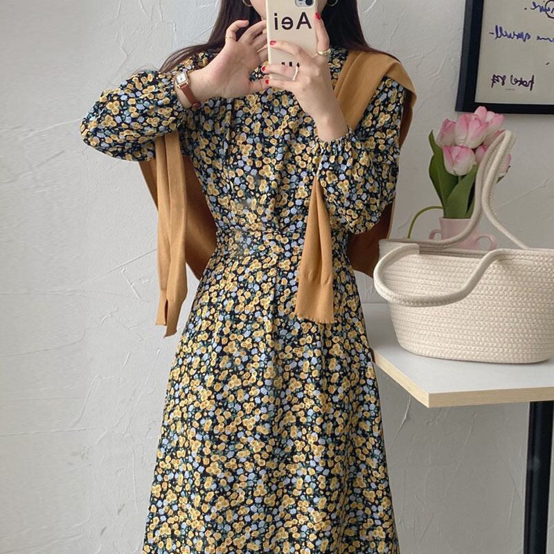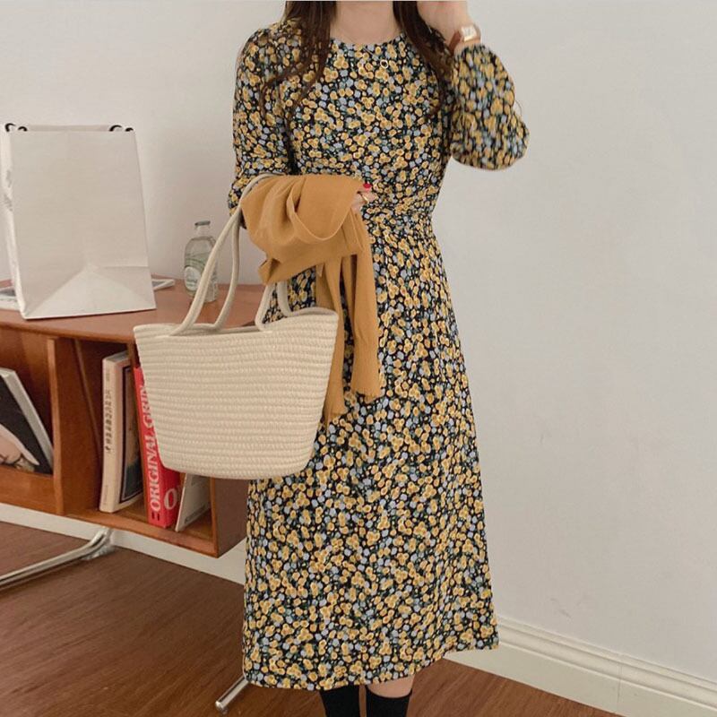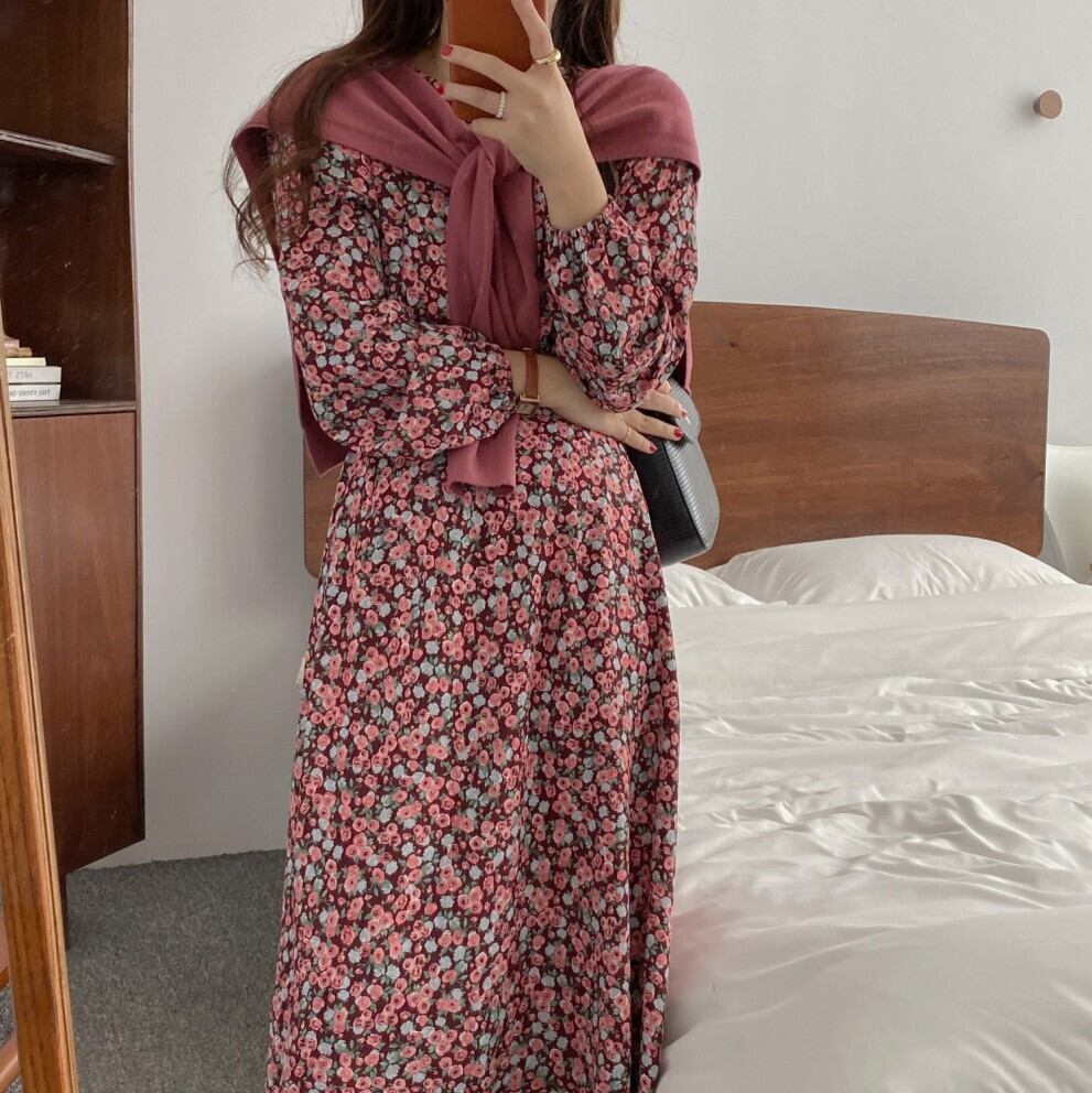 【韓国ファッション】大人可愛い オータムスタンダードラウンドネックスリーブフローラルドレス ニット レトロ 秋物 花柄 Oネック ♡ 韓国1424110892 | パリジェンヌ、韓国系ファッション July
