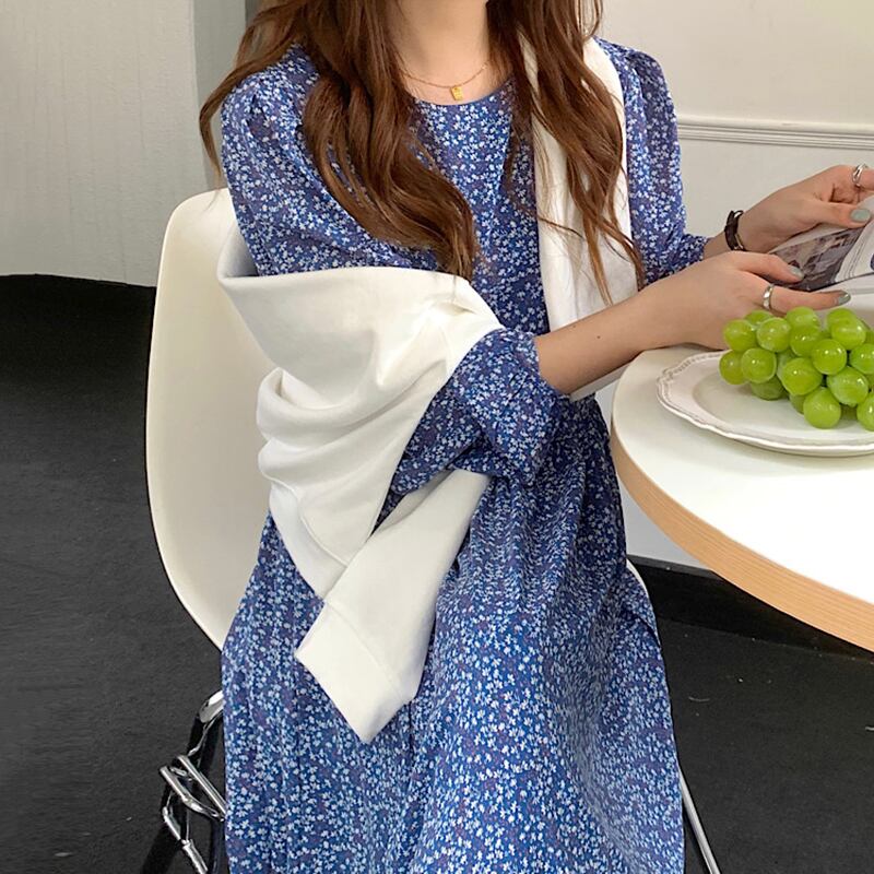 【韓国ファッション】大人可愛い オータムスタンダードホワイトフローラルラウンドネックルーズスリーブドレス レディース レトロ 秋物 花柄 Oネック ♡ 韓国93324888940 | パリジェンヌ、韓国系ファッション July