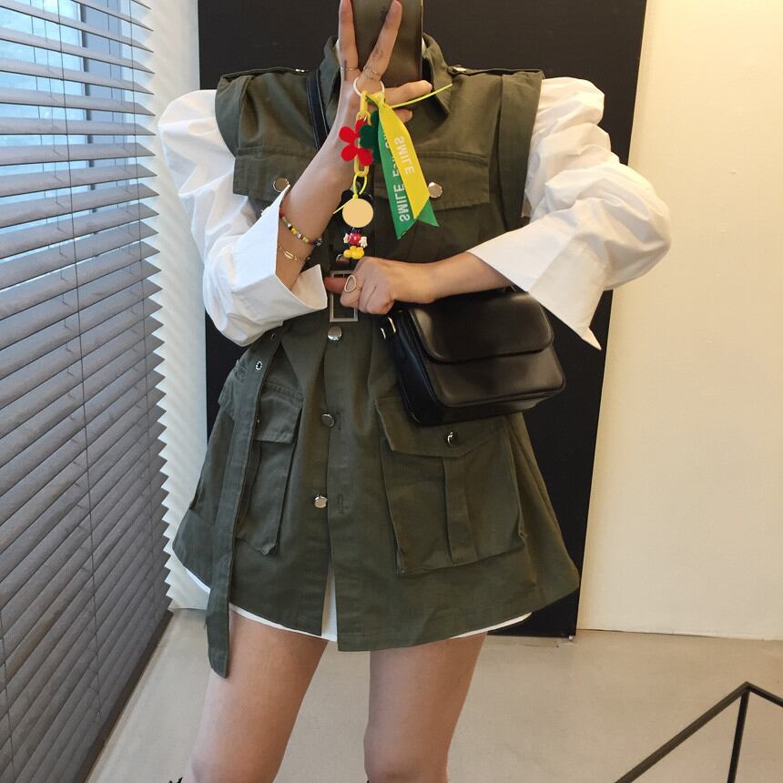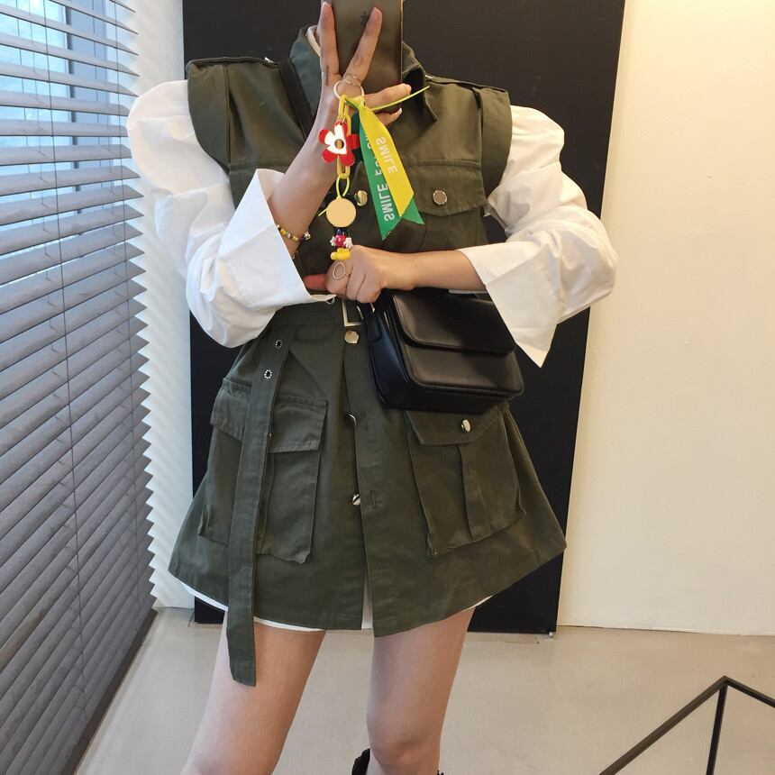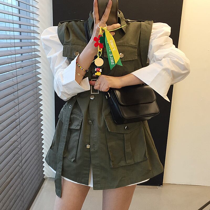 色:シャツ,黒のベストジャケット,グリーンベストジャケット