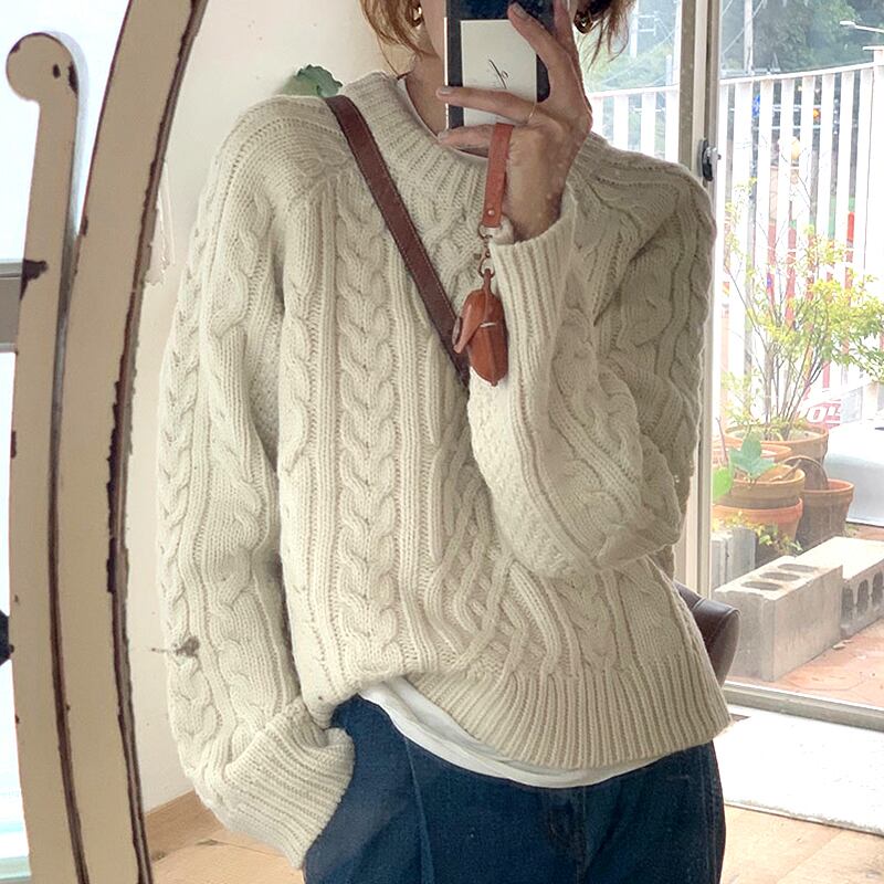 【韓国ファッション】大人可愛い オータムラウンドネックパターンルーズプルオーバー ニットセーター ロング 秋物 Oネック ♡ 韓国22863245260 | パリジェンヌ、韓国系ファッション July