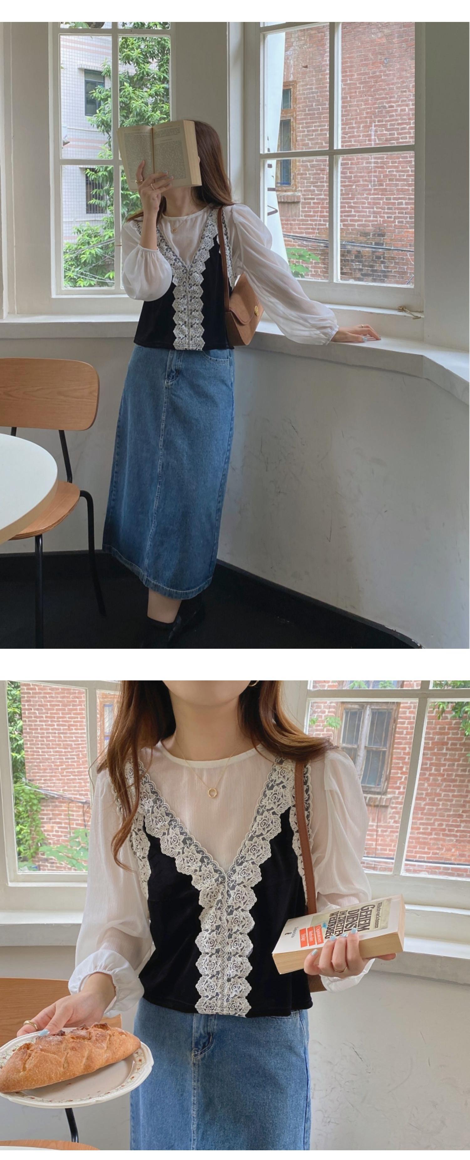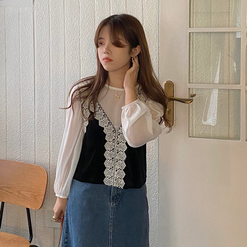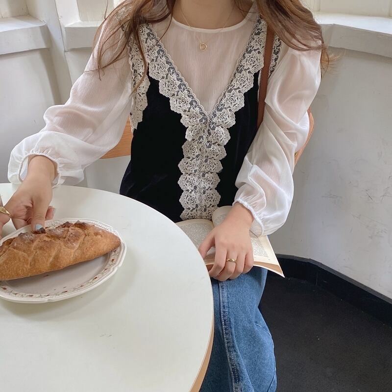 韓国服 オータムベルベットレースVネック長袖スリーブシャツ セット ロング 大人ガーリー スウィート キュート カジュアル 秋物 ♡ nanfeng41406018744 | パリジェンヌ、韓国系ファッション July