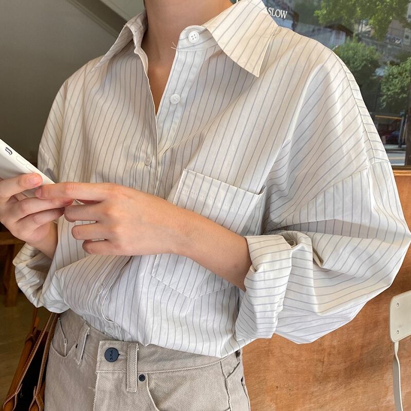 韓国服 ソリッド カラールーズVネックノースリーブニットストライプカジュアルシャツ レディース ロング ソリッドカラー ♡ nanfeng34673464933 | パリジェンヌ、韓国系ファッション July
