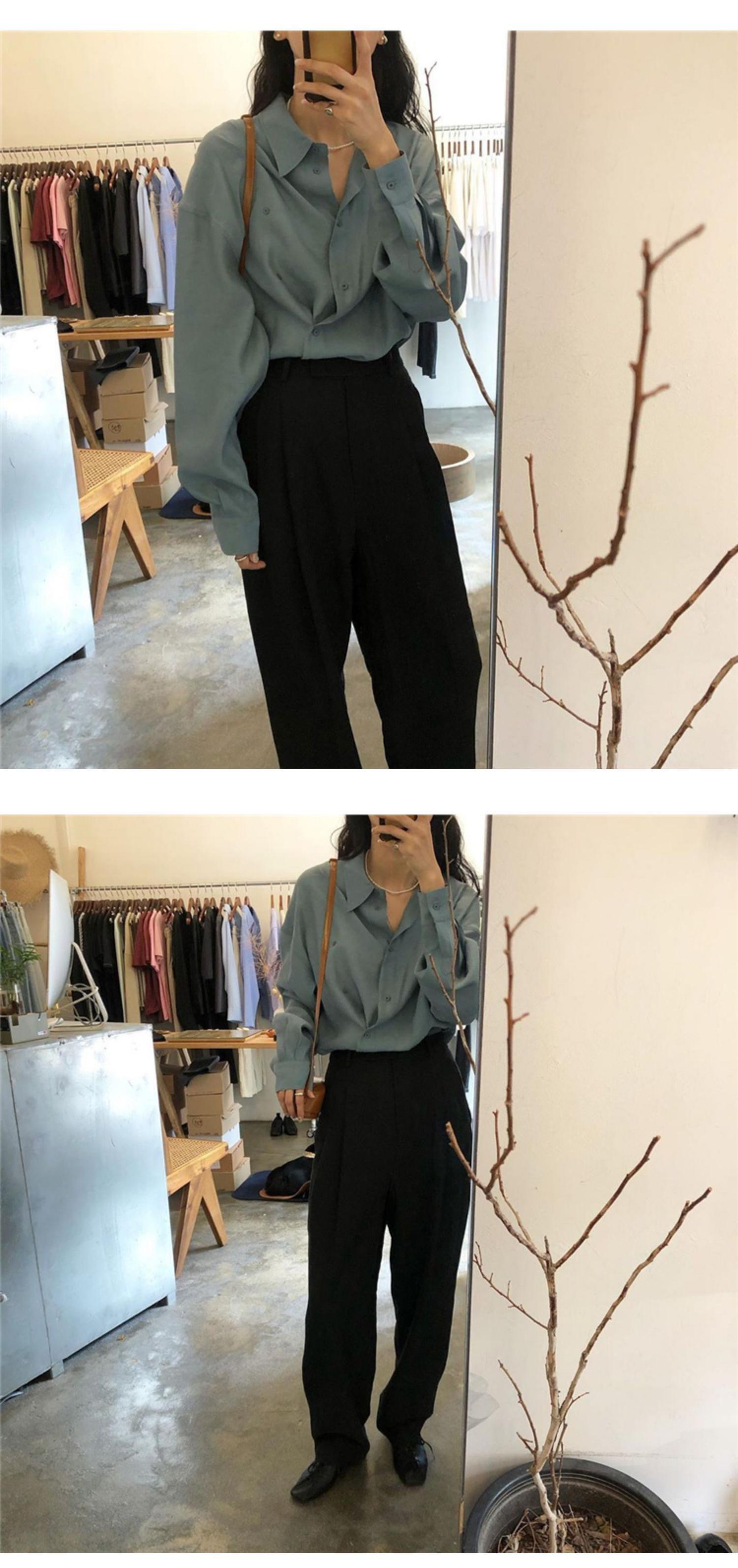 韓国服 ソリッド カラースタンダードダブルブレストシャツ トップス オータム ロング レトロ 秋物 ソリッドカラー ♡ nanfeng6467568540 | パリジェンヌ、韓国系ファッション July