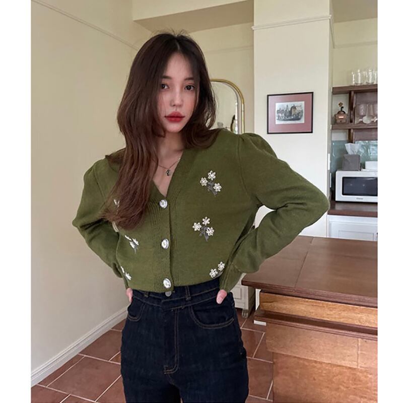 韓国服 オータムFlowerデザイン セーター ジャケット カーディガンショートVネックトップス スタンダードニット レッド レトロ 刺繍 秋物 フラワーデザイン ♡ nanfeng22754191004 | パリジェンヌ、韓国系ファッション July