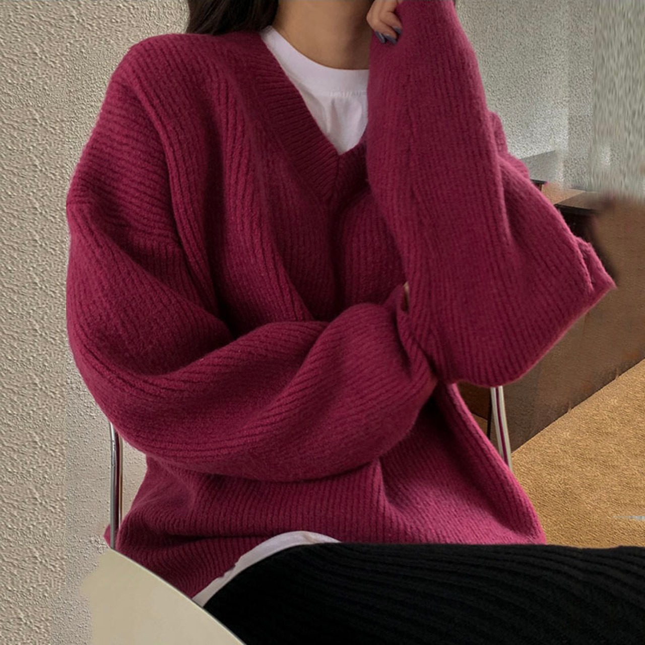 【韓国ファッション】大人可愛い オータムウィンタースタンダードホワイトプラムVネックプルオーバー ルーズニットセーター レディース ロング レトロ 秋物 冬物 パープル ♡ 韓国69282234562 | パリジェンヌ、韓国系ファッション July