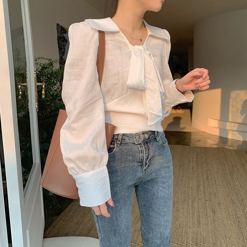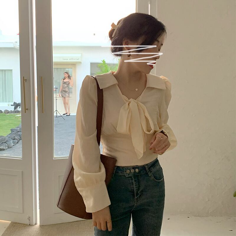 韓国服 スタンダードシャツ オータムウェストスリムトップス ロング リボン レトロ レース 秋物 レースアップ ♡ nanfeng39231603777 | パリジェンヌ、韓国系ファッション July