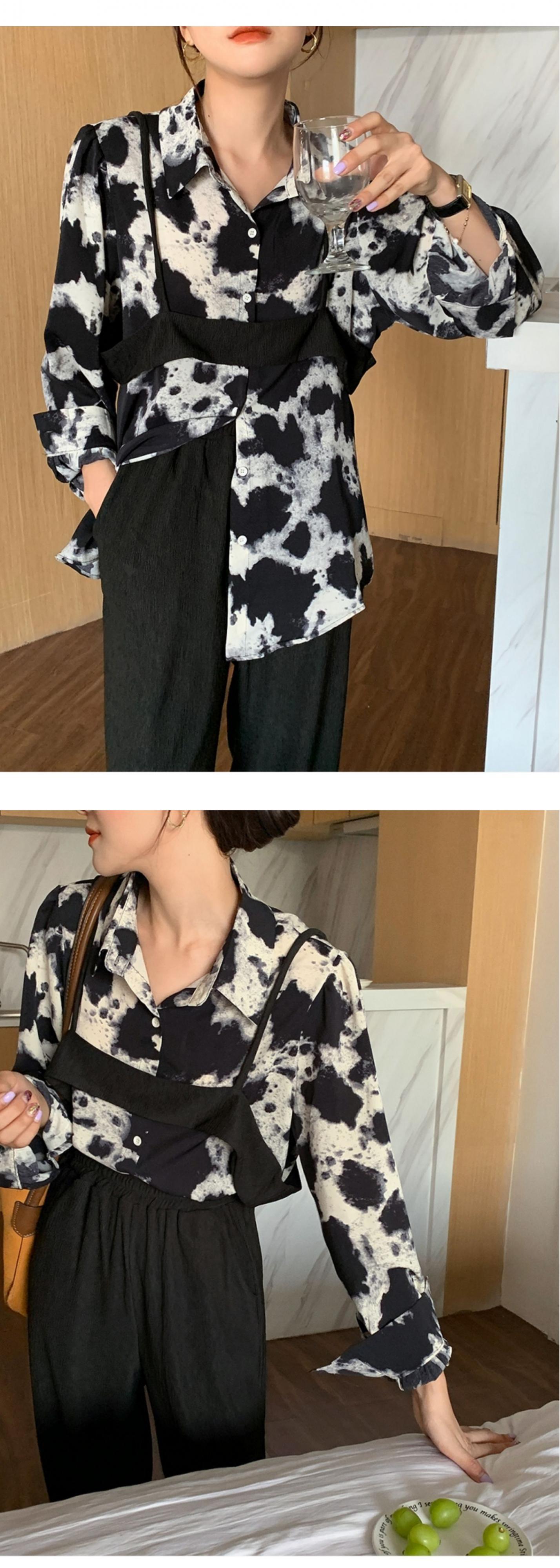 色:コーヒーカラーのツーピースシャツ,黒のツーピースシャツ,黒いズボン,コーヒーカラーパンツ