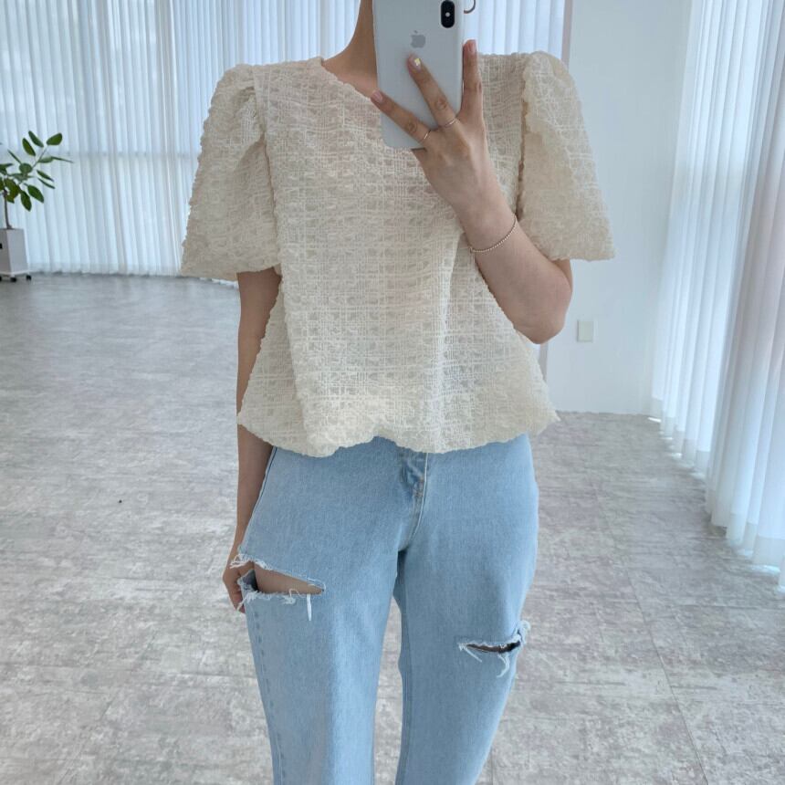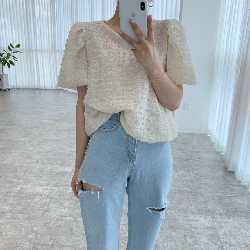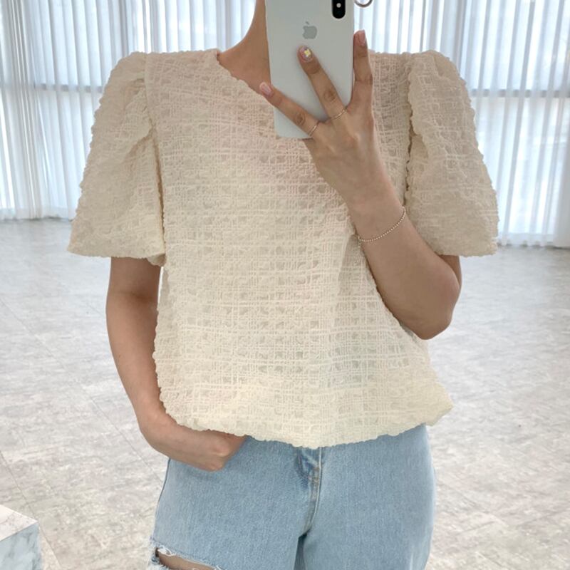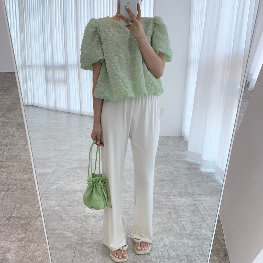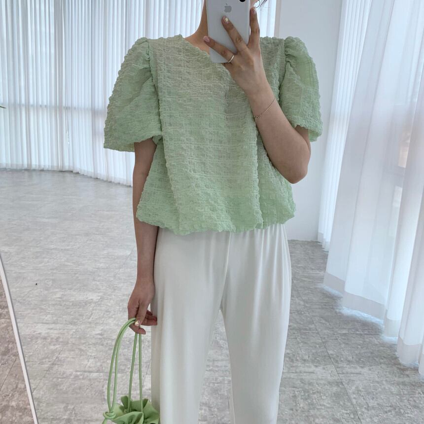 【韓国ファッション】大人可愛い サマーラウンドネックプルオーバー ルーズソリッド カラープリーツシャツ トップス レディース コットン 夏物 Oネック ソリッドカラー ♡ 韓国24109594921 | パリジェンヌ、韓国系ファッション July