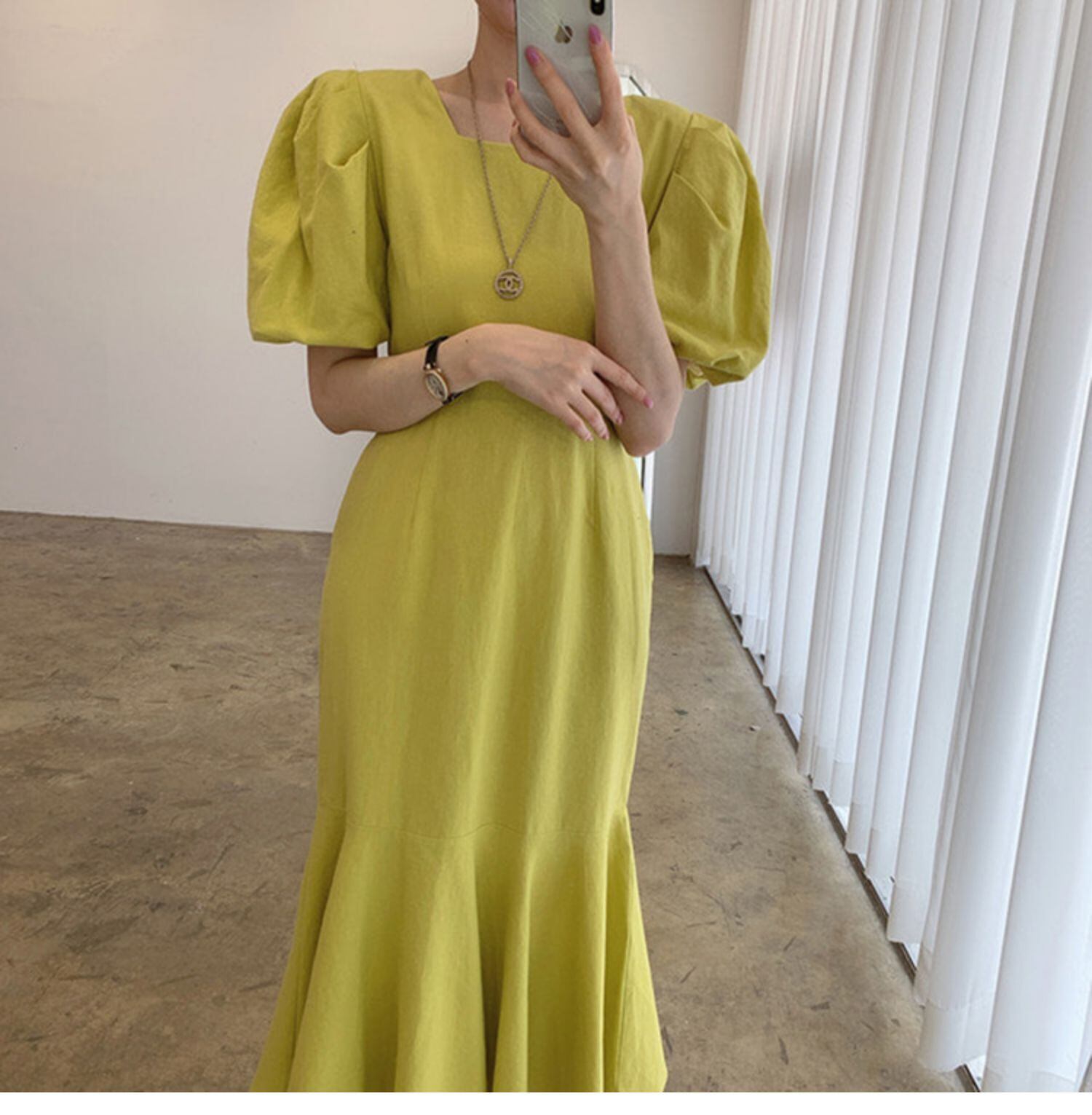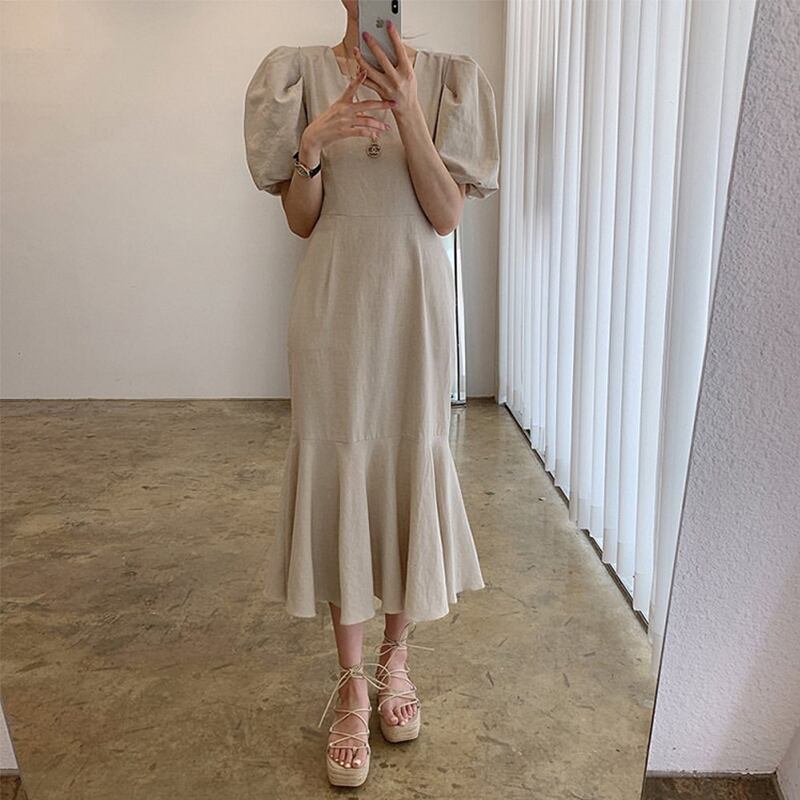 韓国服 サマーカラーソリッド レーススリーブロングスカート 半袖ドレス ショート ハーフスリーブ 夏物 ソリッドカラー スクウェア ♡ nanfeng23544998791 | パリジェンヌ、韓国系ファッション July