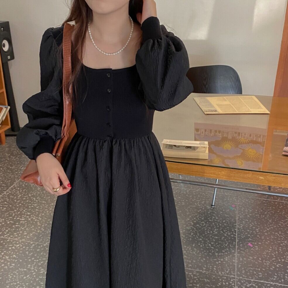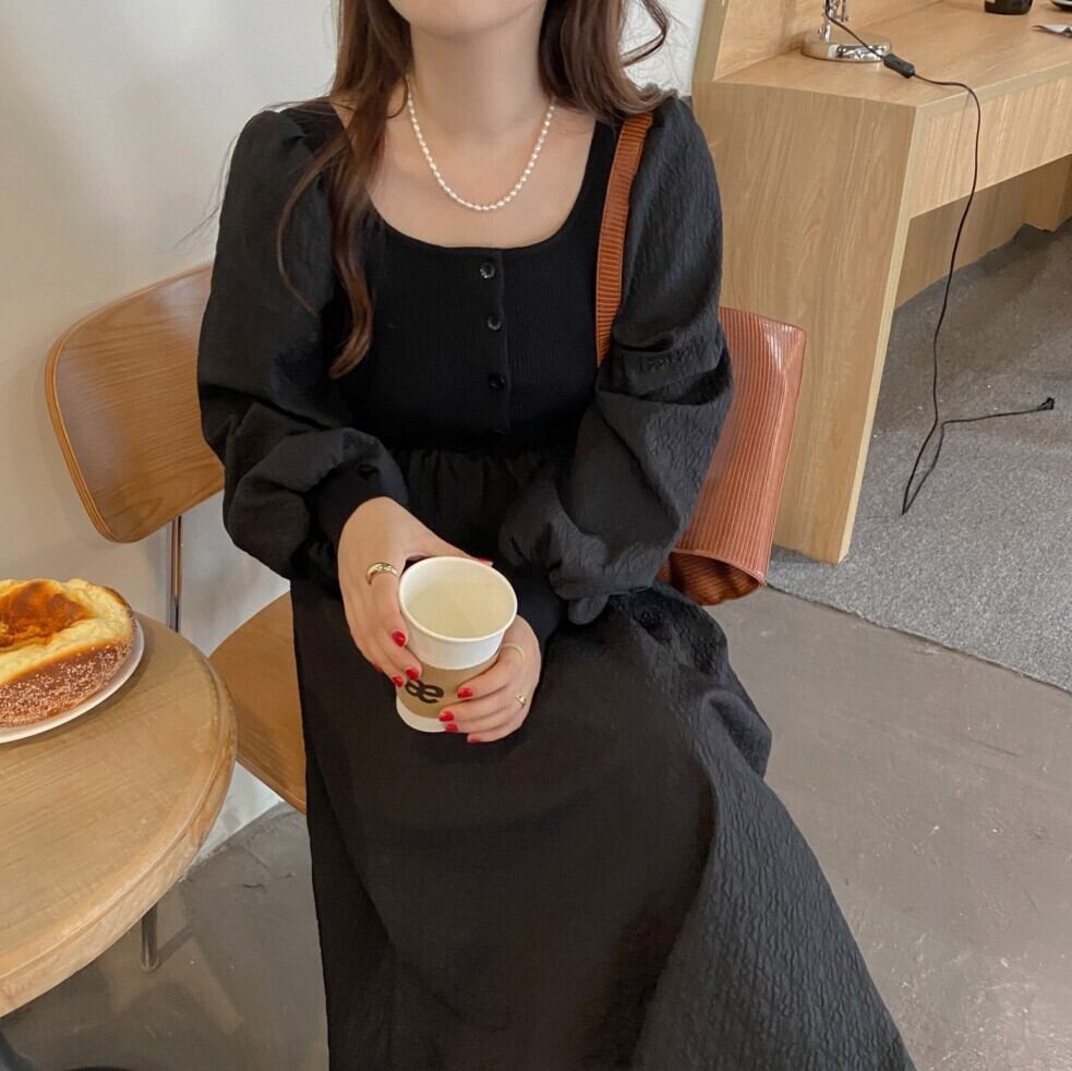 【韓国ファッション】大人可愛い スタンダードカラーニットハイウェストウェスト薄手ロングスリーブドレス レディース レトロ スクウェア ステッチ ♡ 韓国37420614952 | パリジェンヌ、韓国系ファッション July