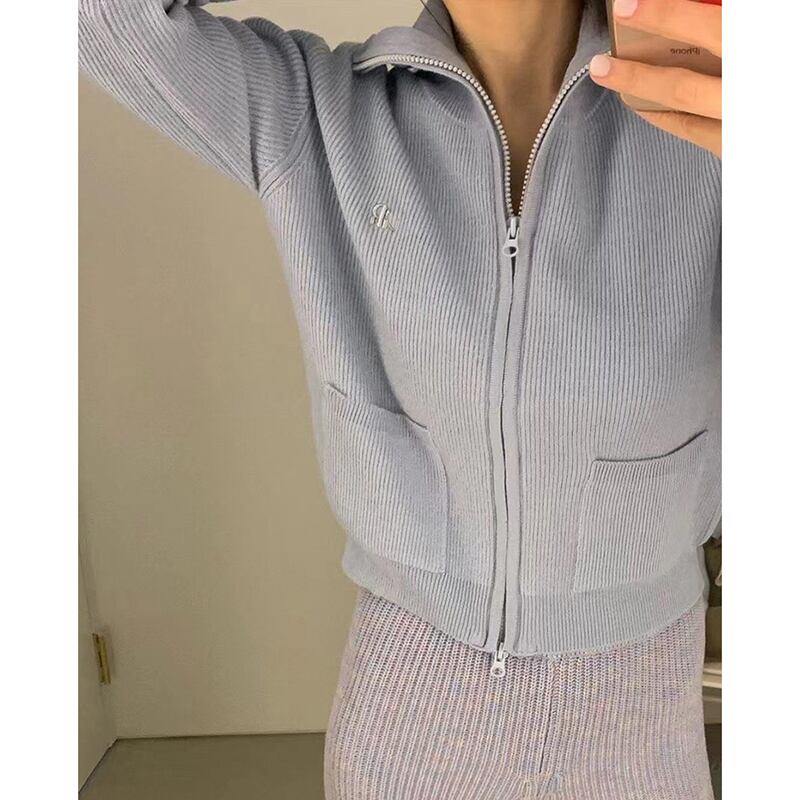 韓国服 オータムカラージッパーニット ソリッド ショートセーター ジャケット レディース ロング 秋物 ソリッドカラー ♡ nanfeng57817569378 | パリジェンヌ、韓国系ファッション July