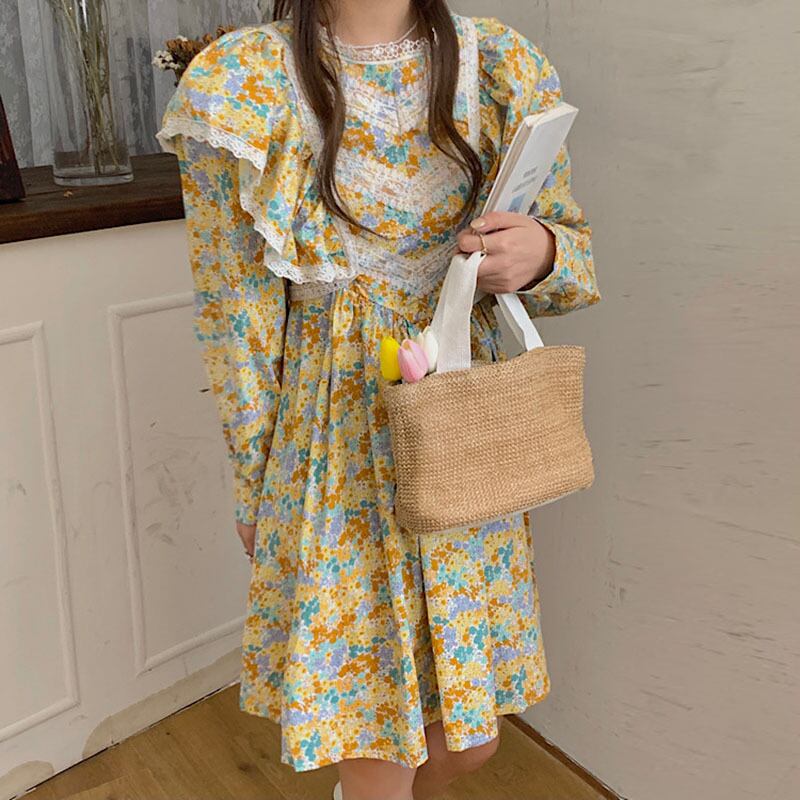 【韓国ファッション】大人可愛い ラウンドネックレースルーズスリーブフローラルドレス 大人ガーリー スウィート キュート カジュアル 花柄 Oネック ステッチ ♡ 韓国52199760532 | パリジェンヌ、韓国系ファッション July