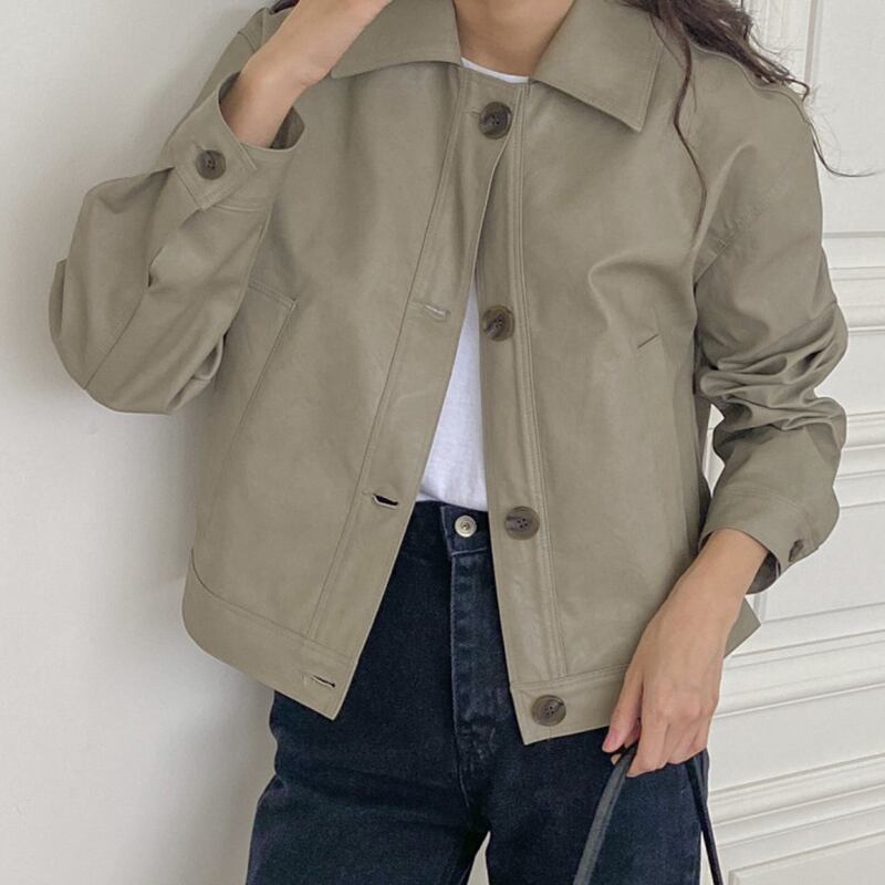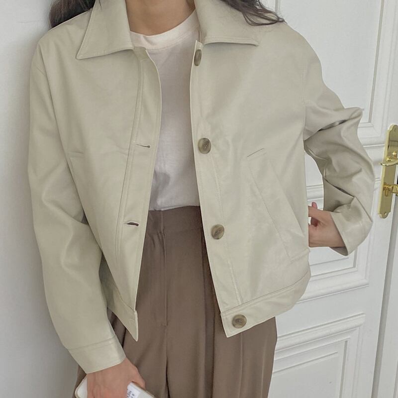 【韓国ファッション】大人可愛い オータムスタンダードルーズカジュアルショートレザージャケット レディース ロング レトロ 秋物 ♡ 韓国39216503987 | パリジェンヌ、韓国系ファッション July