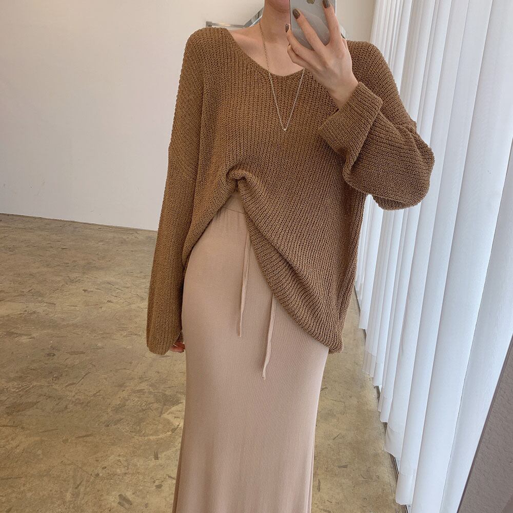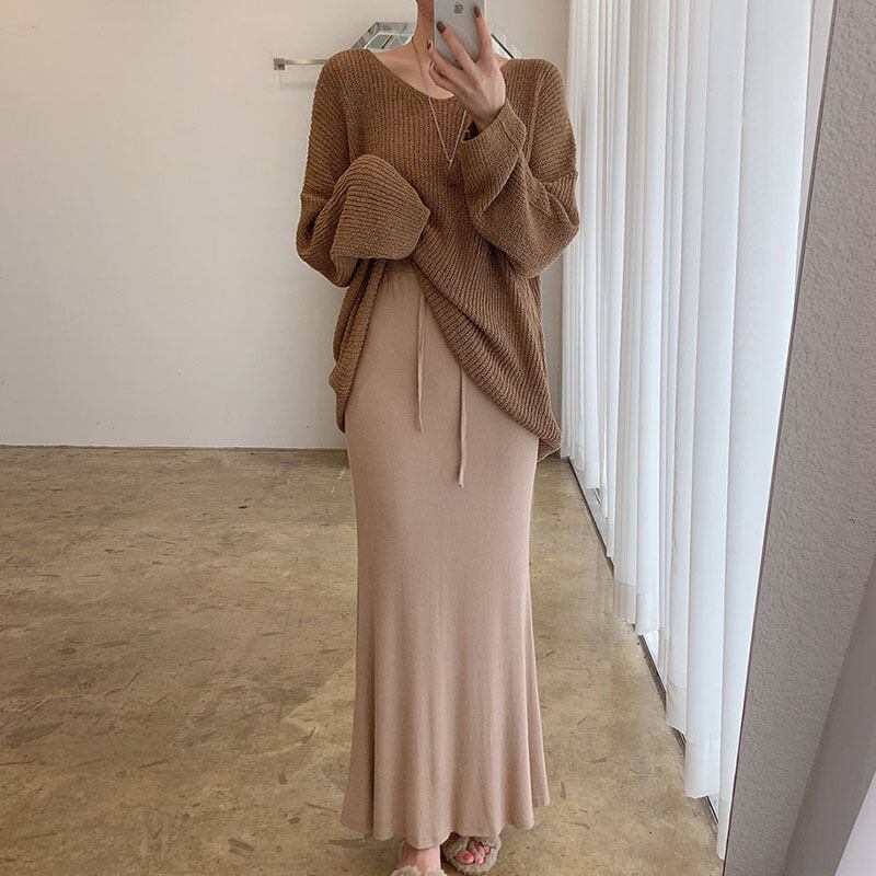 色:紫のセーター,アプリコットセーター,茶色のセーター,グレースカート,ライトグレーのスカート,カーキ色のスカート