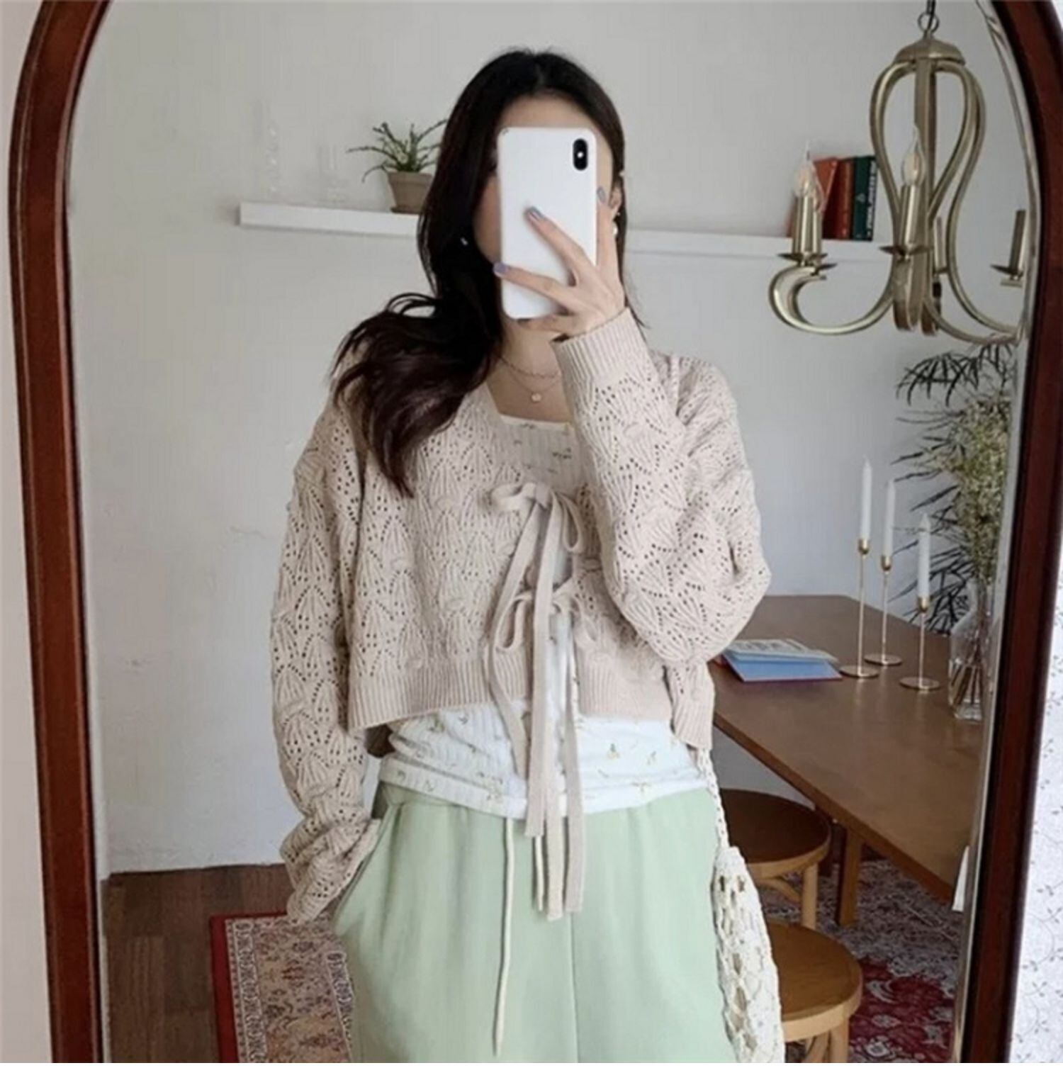 韓国服 スタンダードリボンVネックニットカーディガンオータムショートトップス レトロ 大人ガーリー スウィート キュート カジュアル 秋物 ♡ nanfeng67586752642 | パリジェンヌ、韓国系ファッション July