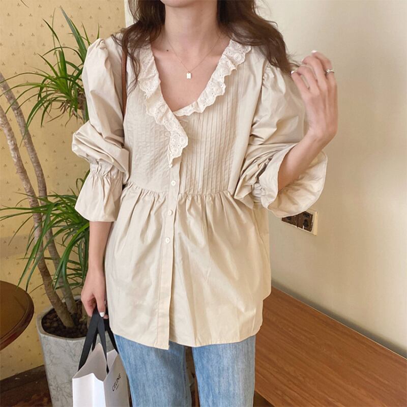 韓国服 オータムスタンダードレースシャツ レディース レトロ 大人ガーリー スウィート キュート カジュアル 秋物 ♡ nanfeng49076906636 | パリジェンヌ、韓国系ファッション July