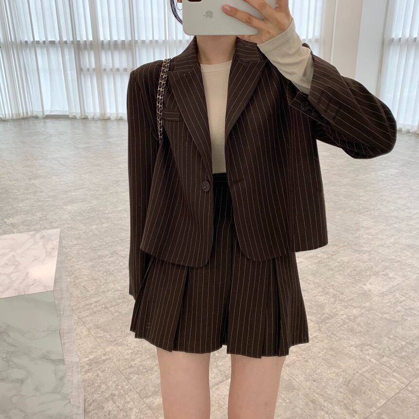 色:黒いジャケット,ブラウンコート,茶色のスカート,黒スカート
