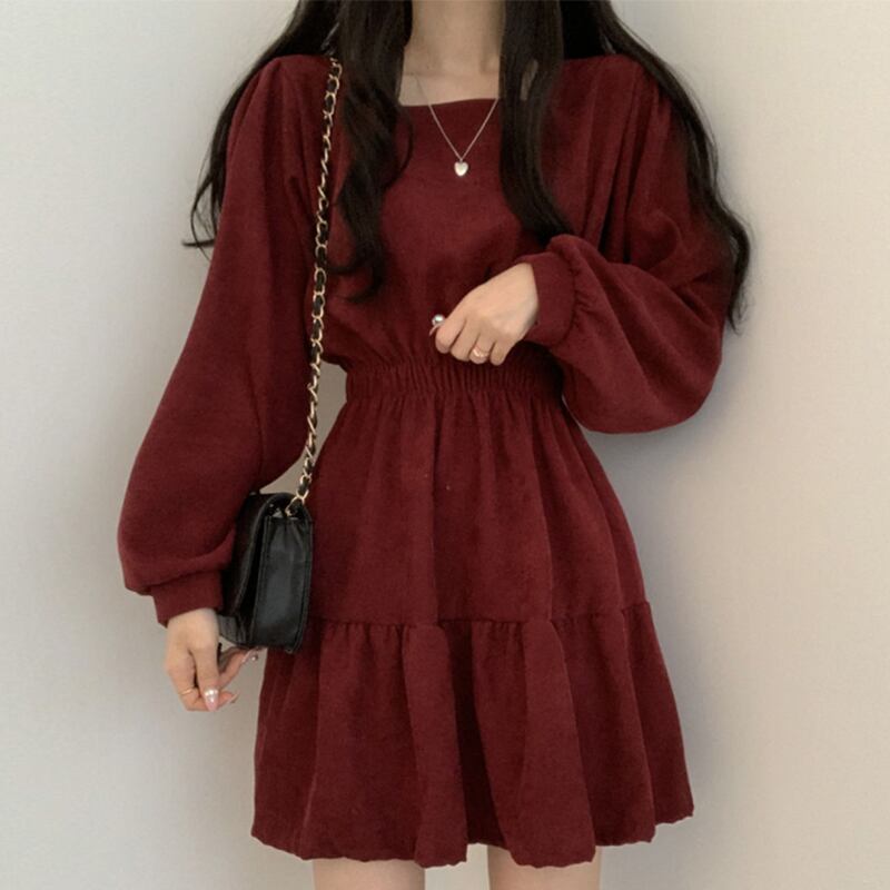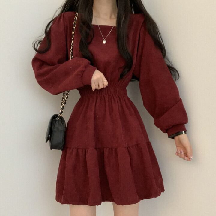 【韓国ファッション】大人可愛い オータムスタンダードカラーストレッチウェスト薄手スリーブベルベットドレス レトロ エラスティック 伸縮 秋物 スクウェア ♡ 韓国44499098204 | パリジェンヌ、韓国系ファッション July
