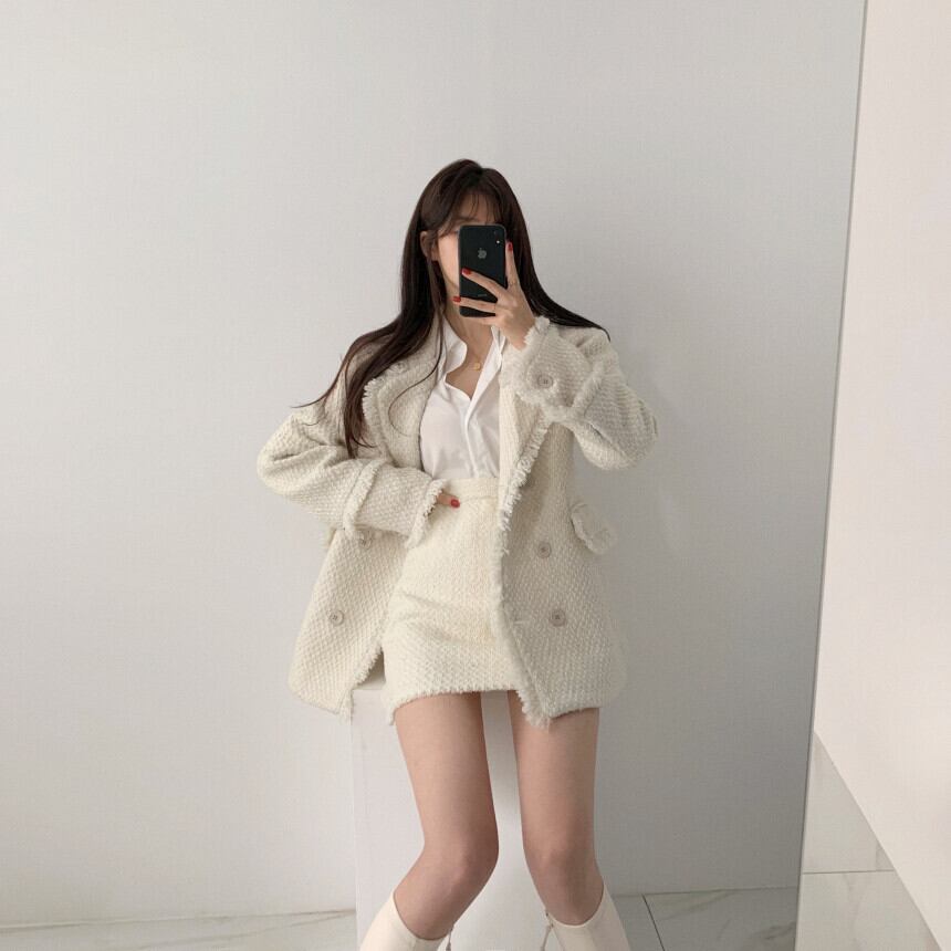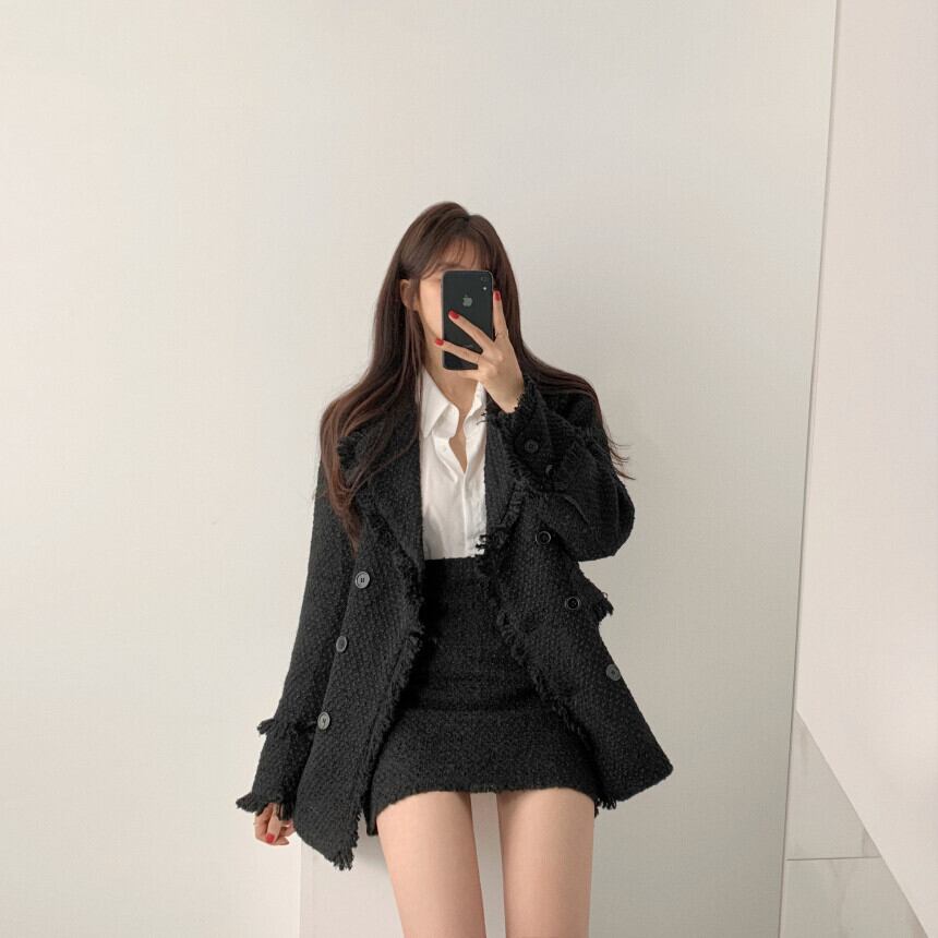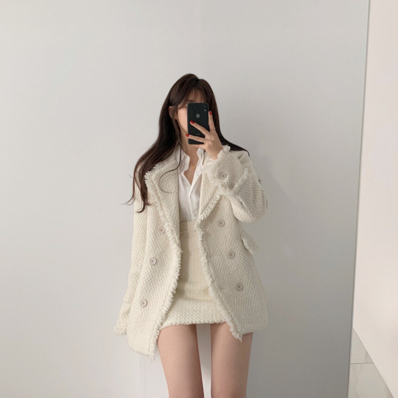【韓国ファッション】大人可愛い オータムウィンタースタンダードダブルブレストツィードジャケット ハイウェストウェストスカート レトロ 秋物 冬物 ♡ 韓国50866269558 | パリジェンヌ、韓国系ファッション July