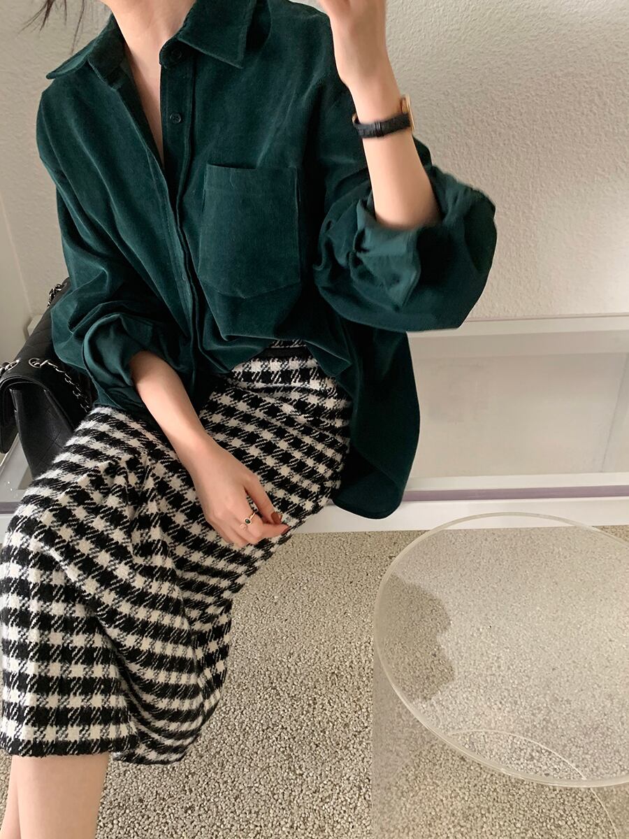 【韓国ファッション】大人可愛い オータムウィンタースタンダードコーデュロイシャツ ハイウェストウェストスカート レトロ 秋物 冬物 ♡ 韓国4680479288 | パリジェンヌ、韓国系ファッション July
