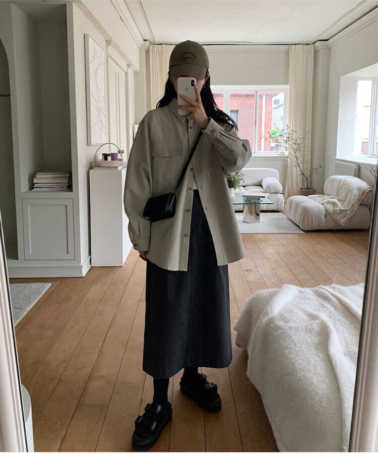 【韓国ファッション】大人可愛い オータムカジュアルルーズジャケット ハイウェストウェストスカート レディース ロング 秋物 ♡ 韓国10773534769 | パリジェンヌ、韓国系ファッション July