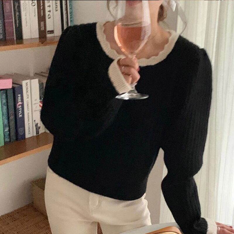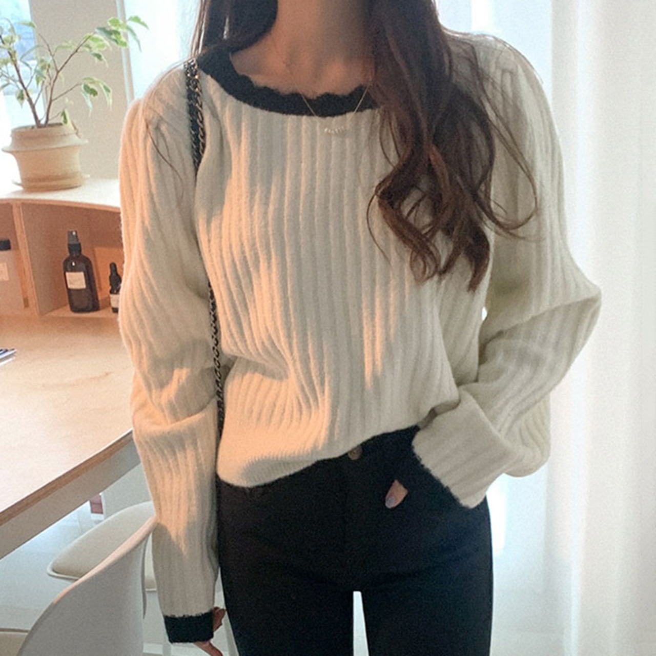 【韓国ファッション】大人可愛い スタンダードラウンドネックルーズショートストライプニットセーター レディース ロング レトロ Oネック ステッチ ♡ 韓国31954064829 | パリジェンヌ、韓国系ファッション July