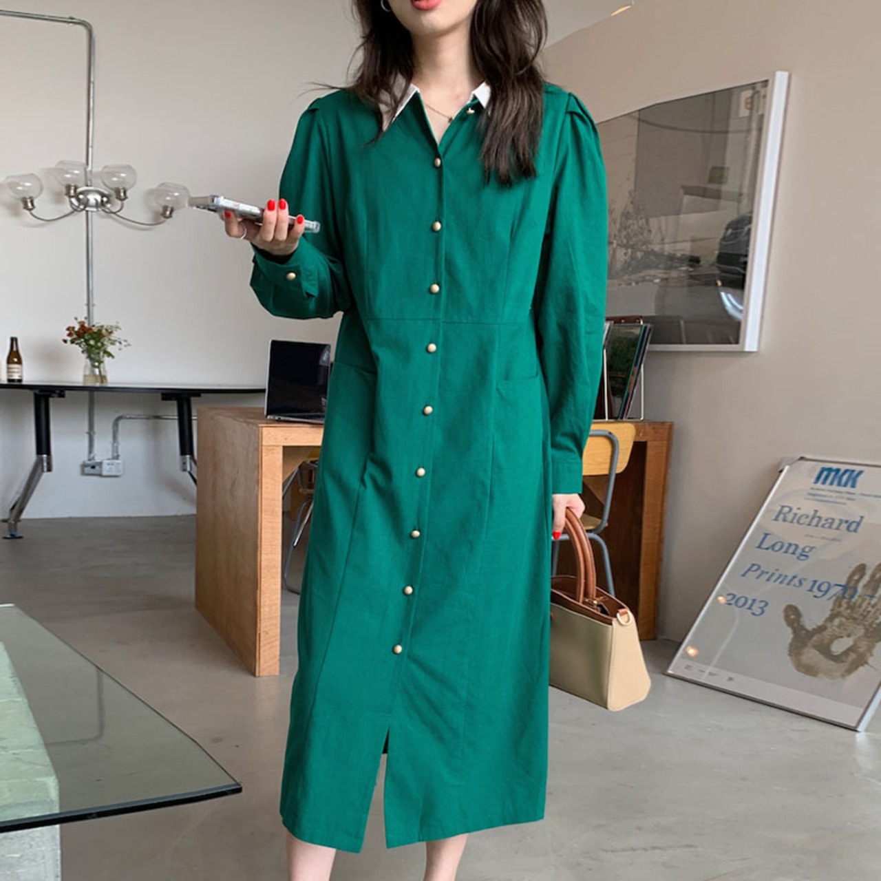 【韓国ファッション】大人可愛い オータムスタンダードカラーダブルポケットメタルシングルブレストルーズスリーブドレス レトロ 秋物 ♡ 韓国97542631445 | パリジェンヌ、韓国系ファッション July
