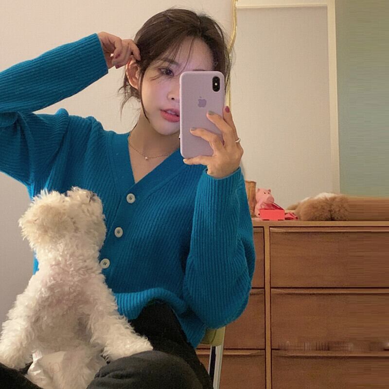 韓国服 ブルーホワイトウールニットカーディガンオータムVネックパターンセーター 大人ガーリー スウィート キュート カジュアル 秋物 ♡ nanfeng98431040016 | パリジェンヌ、韓国系ファッション July