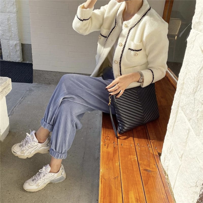 【韓国ファッション】大人可愛い オータムウィンタースタンダードラウンドネックルーズウールニットセーター コート レトロ 秋物 冬物 Oネック ポケット多め マルチポケット ♡ 韓国3431955537 | パリジェンヌ、韓国系ファッション July