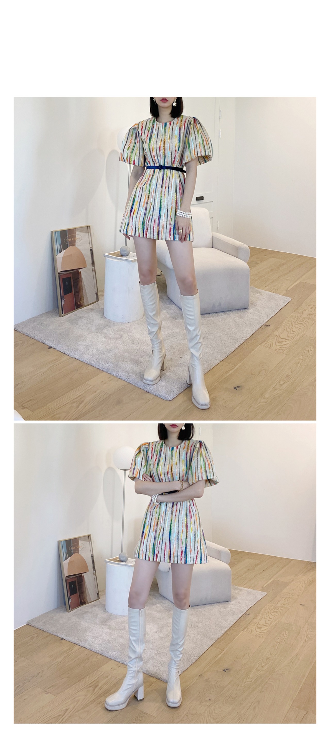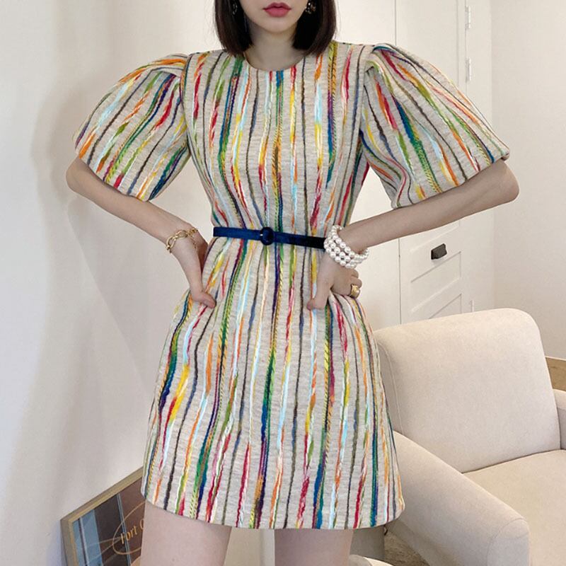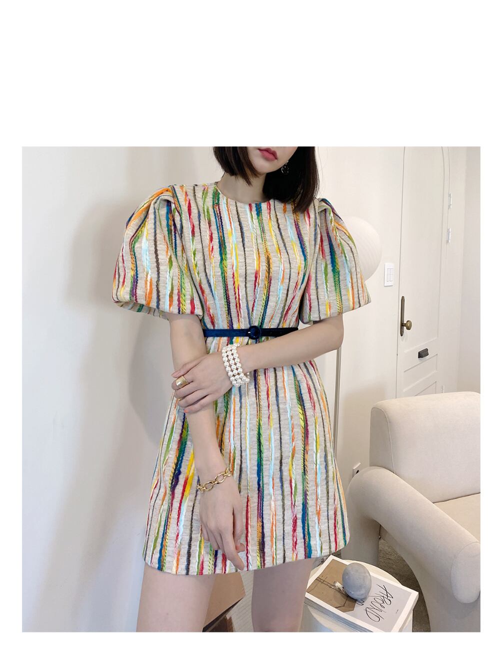 【韓国ファッション】大人可愛い オータムスタイルラウンドネックカラーラインスリーブドレス ベルト エレガント 秋物 ハーネス Oネック ♡ 韓国51792205267 | パリジェンヌ、韓国系ファッション July