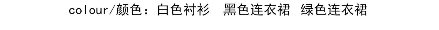 色:白のシャツ,黒いドレス,緑のドレス