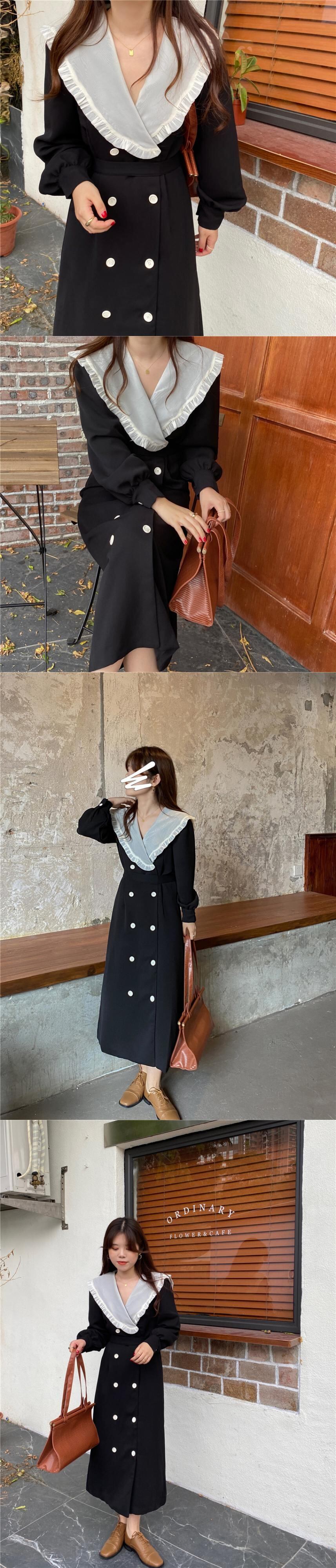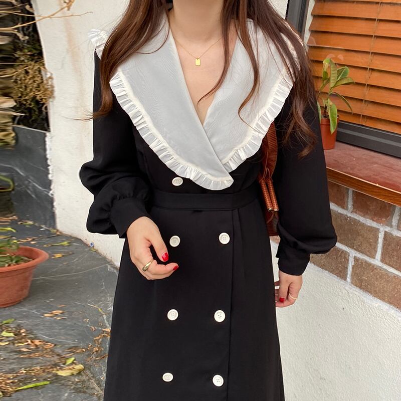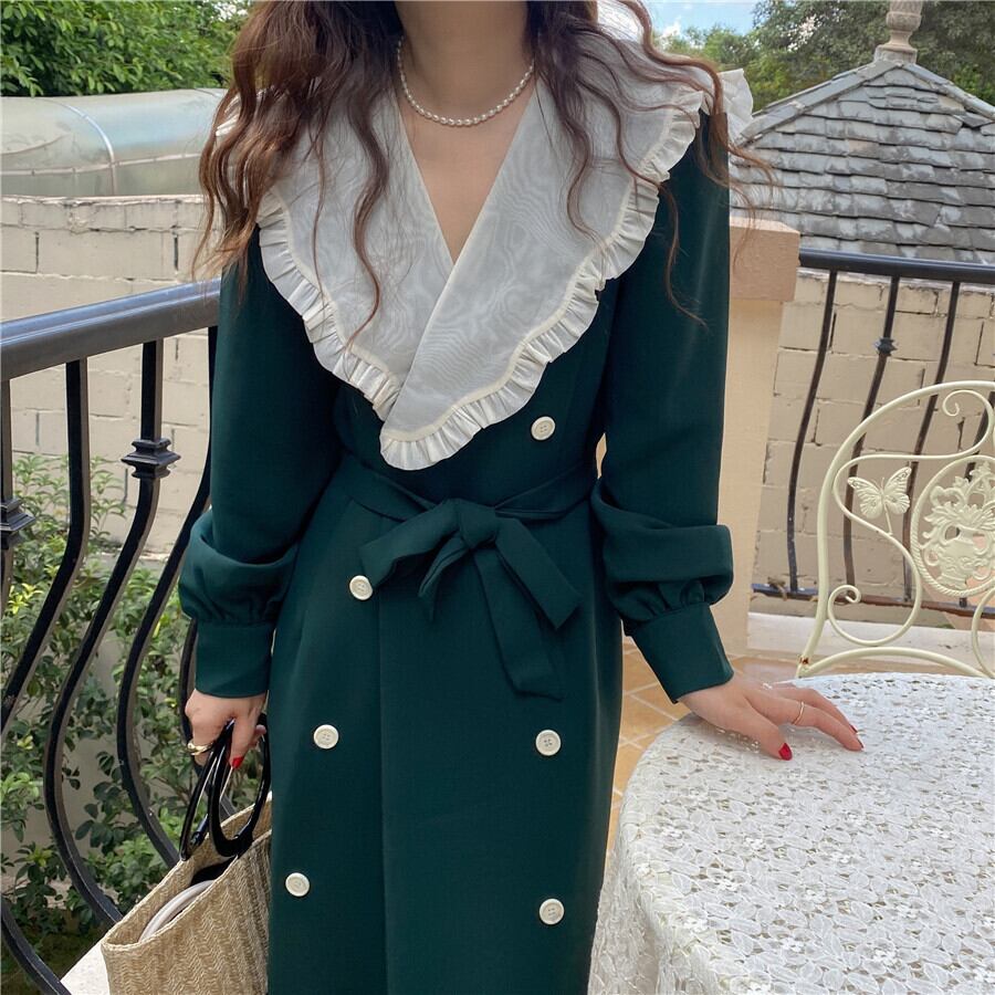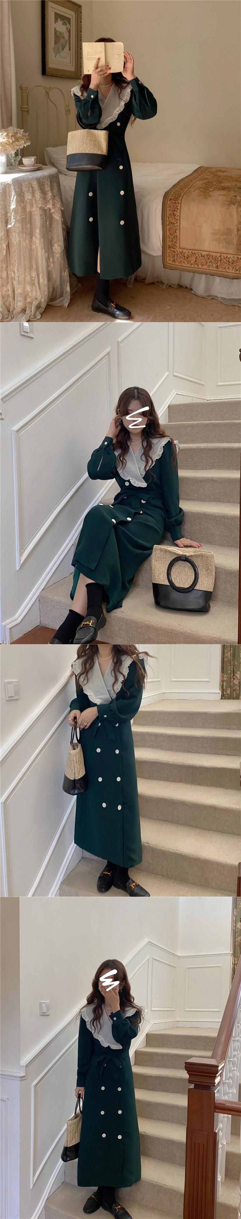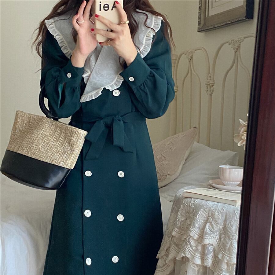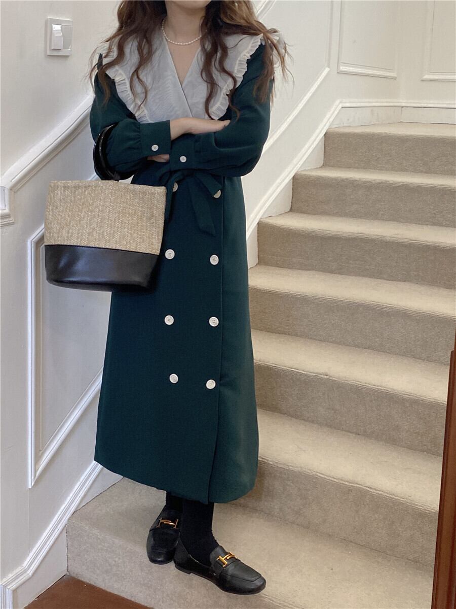 【韓国ファッション】大人可愛い オータムスタンダードスタイルカラーレースウェストダブルブレストスリーブドレス レトロ 秋物 ステッチ ♡ 韓国45246725874 | パリジェンヌ、韓国系ファッション July