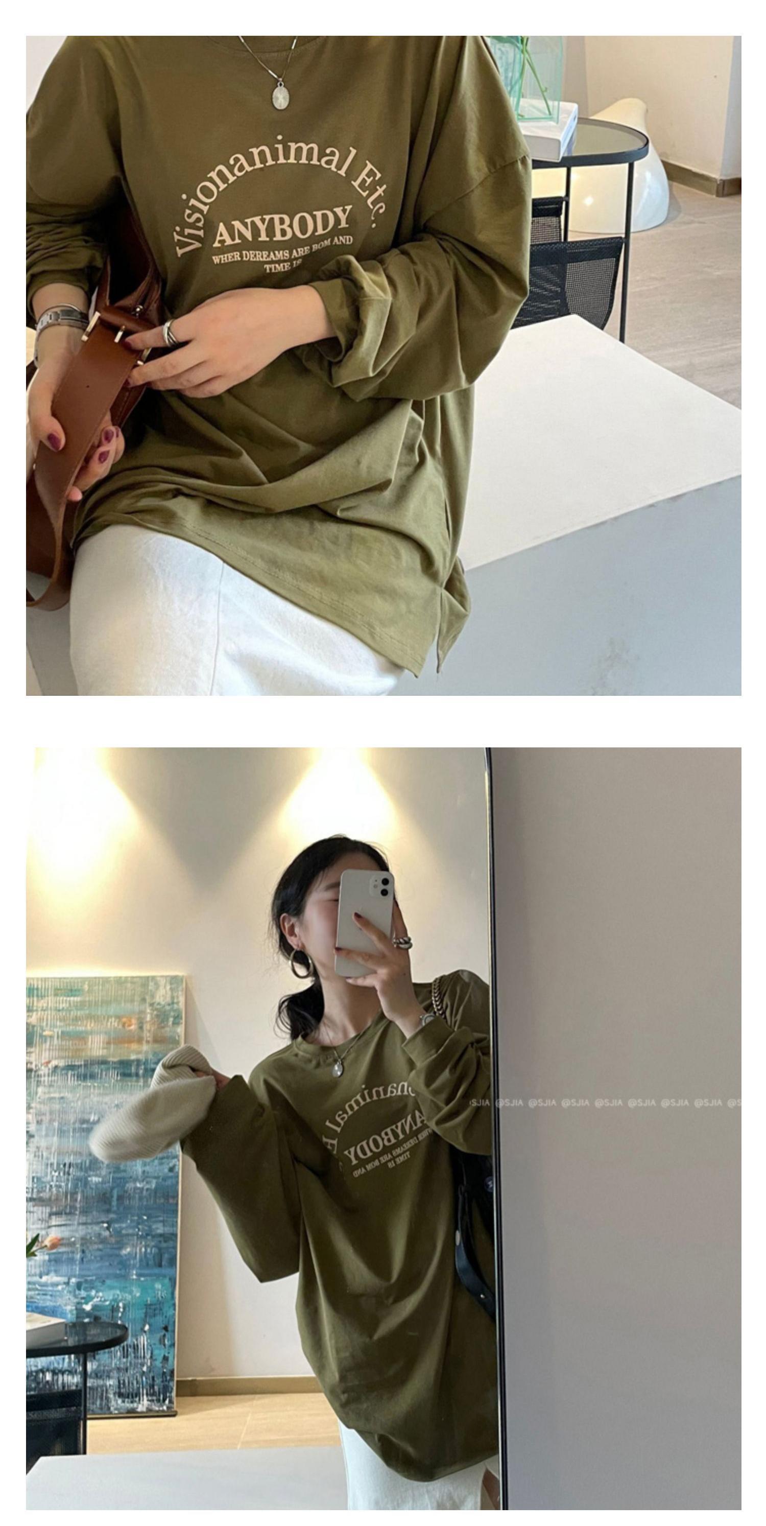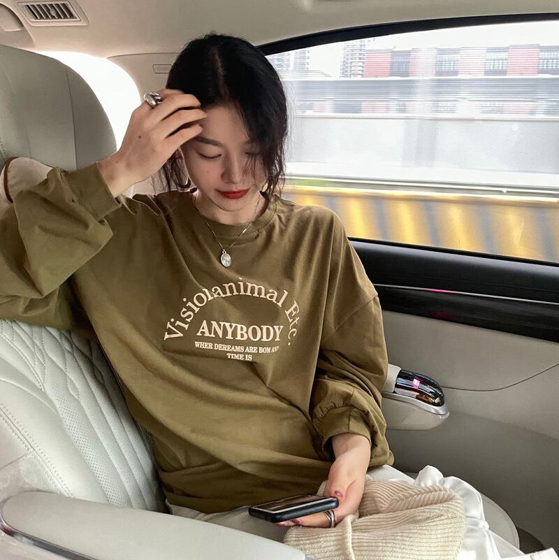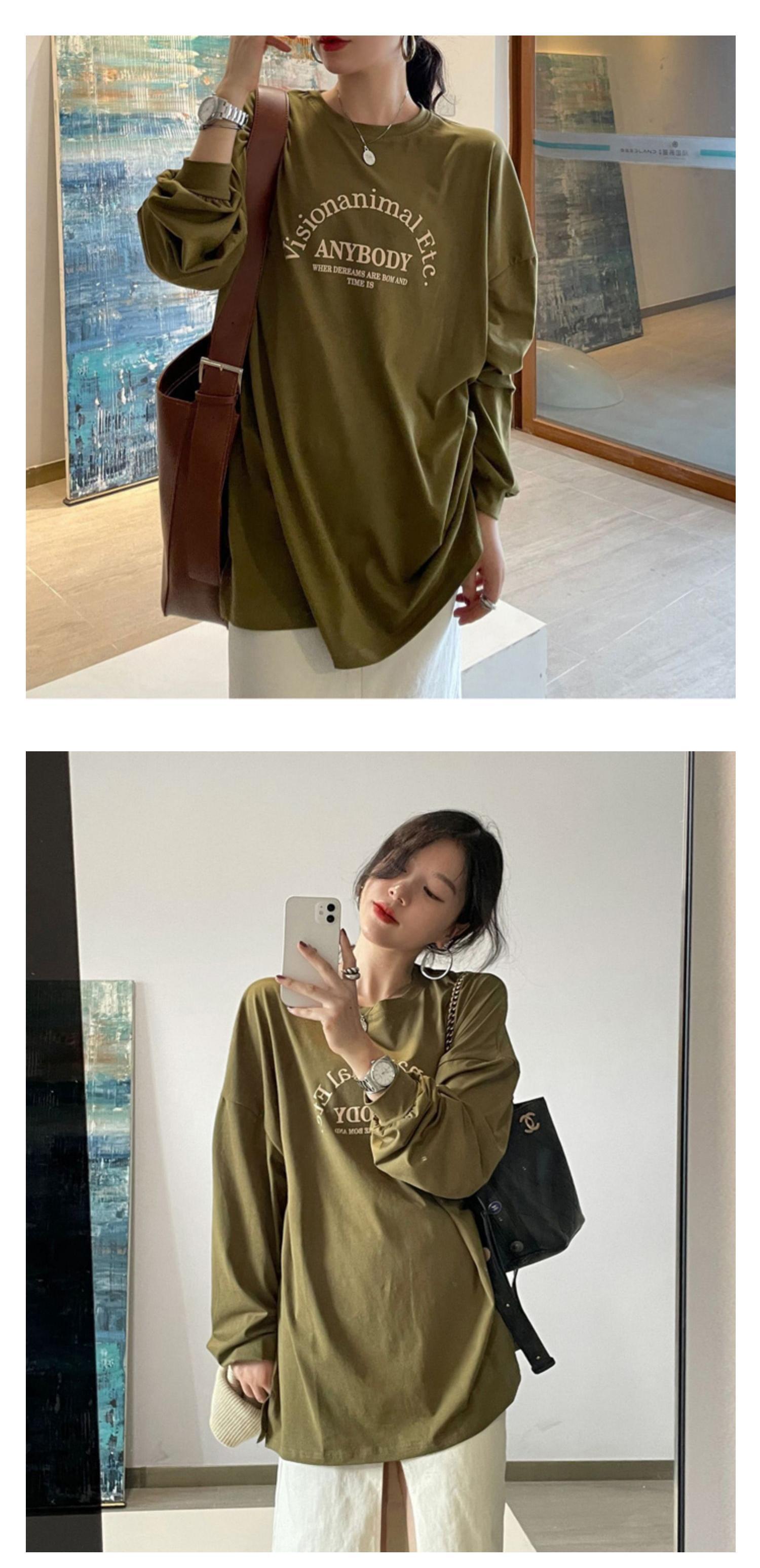 韓国服 オータムスタンダードルーズプリントカジュアルラウンドネックTシャツ トップス レディース ロング レトロ 秋物 Oネック ♡ nanfeng81662457062 | パリジェンヌ、韓国系ファッション July