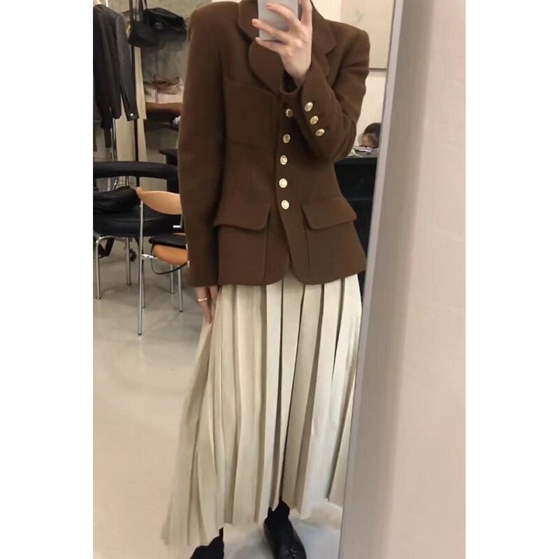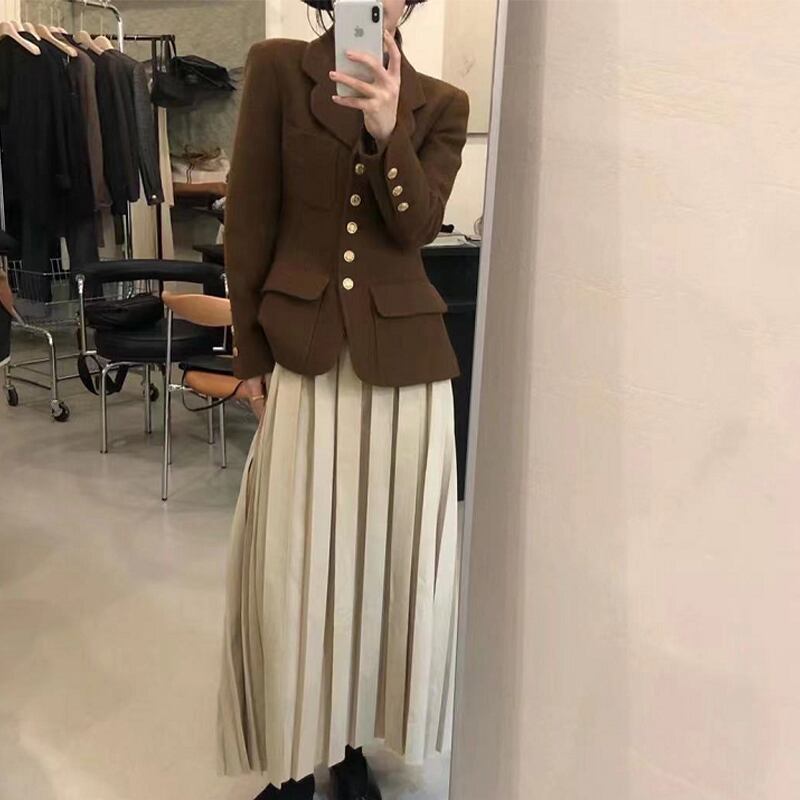 色:ブラウンコート,黒いジャケット,ベージュのスカート,グレースカート