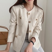 【韓国ファッション】大人可愛い ラウンドネックルーズツィードショートコート ロング Oネック ポケット多め マルチポケット ♡ 韓国26952293770 | パリジェンヌ、韓国系ファッション July