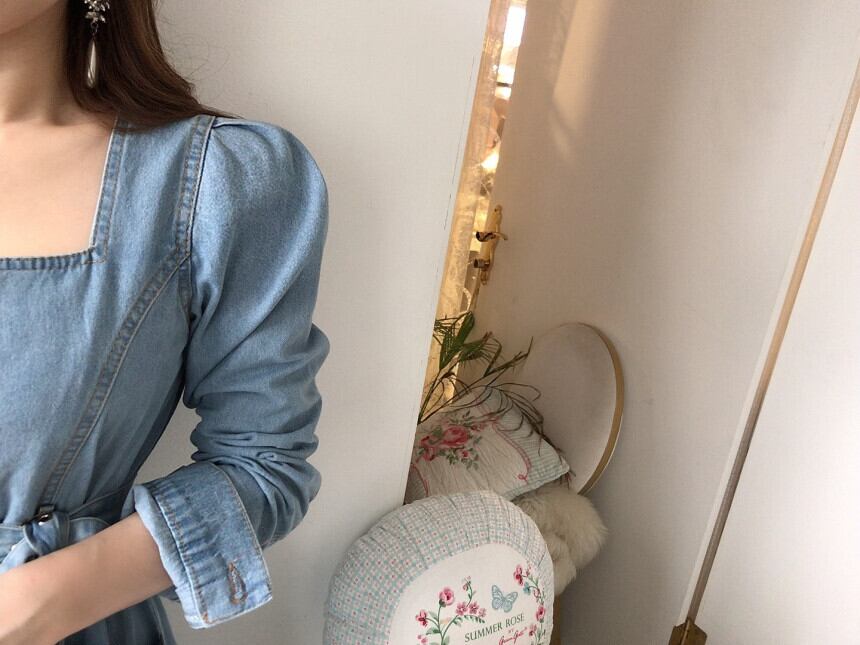 【韓国ファッション】大人可愛い スタンダードスリムカラーストラップ ウェストダブルロングドレス レディース レトロ スクウェア ♡ 韓国15957520033 | パリジェンヌ、韓国系ファッション July