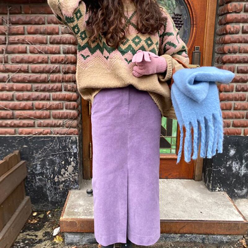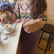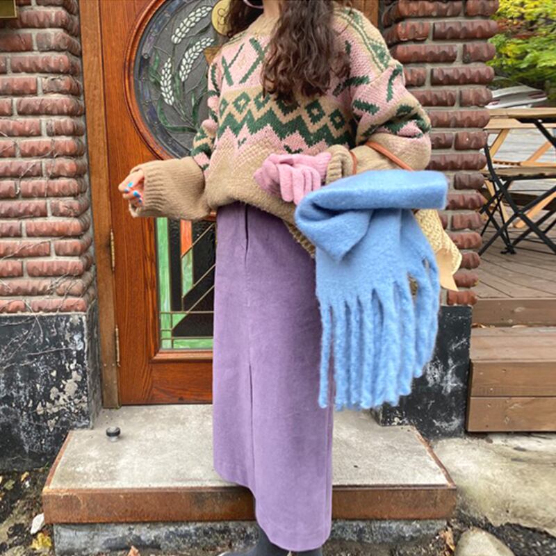 【韓国ファッション】大人可愛い オータムスタンダードラウンドネックパターンニットセーター スカート レトロ 秋物 Oネック パープル ♡ 韓国77627173290 | パリジェンヌ、韓国系ファッション July