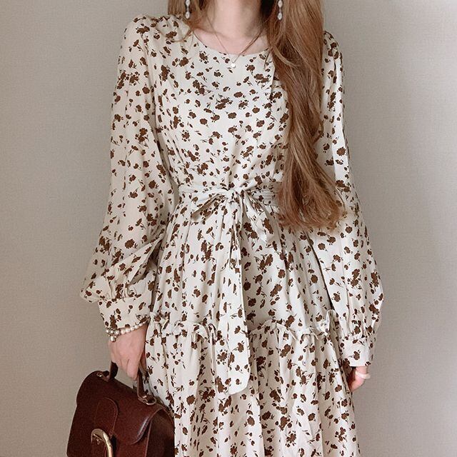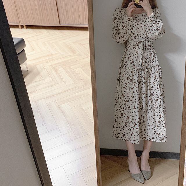 【韓国ファッション】大人可愛い オータムスタンダードラウンドネックレースウェストスリーブフローラルドレス レトロ エレガント 秋物 花柄 Oネック ステッチ ♡ 韓国81206360467 | パリジェンヌ、韓国系ファッション July