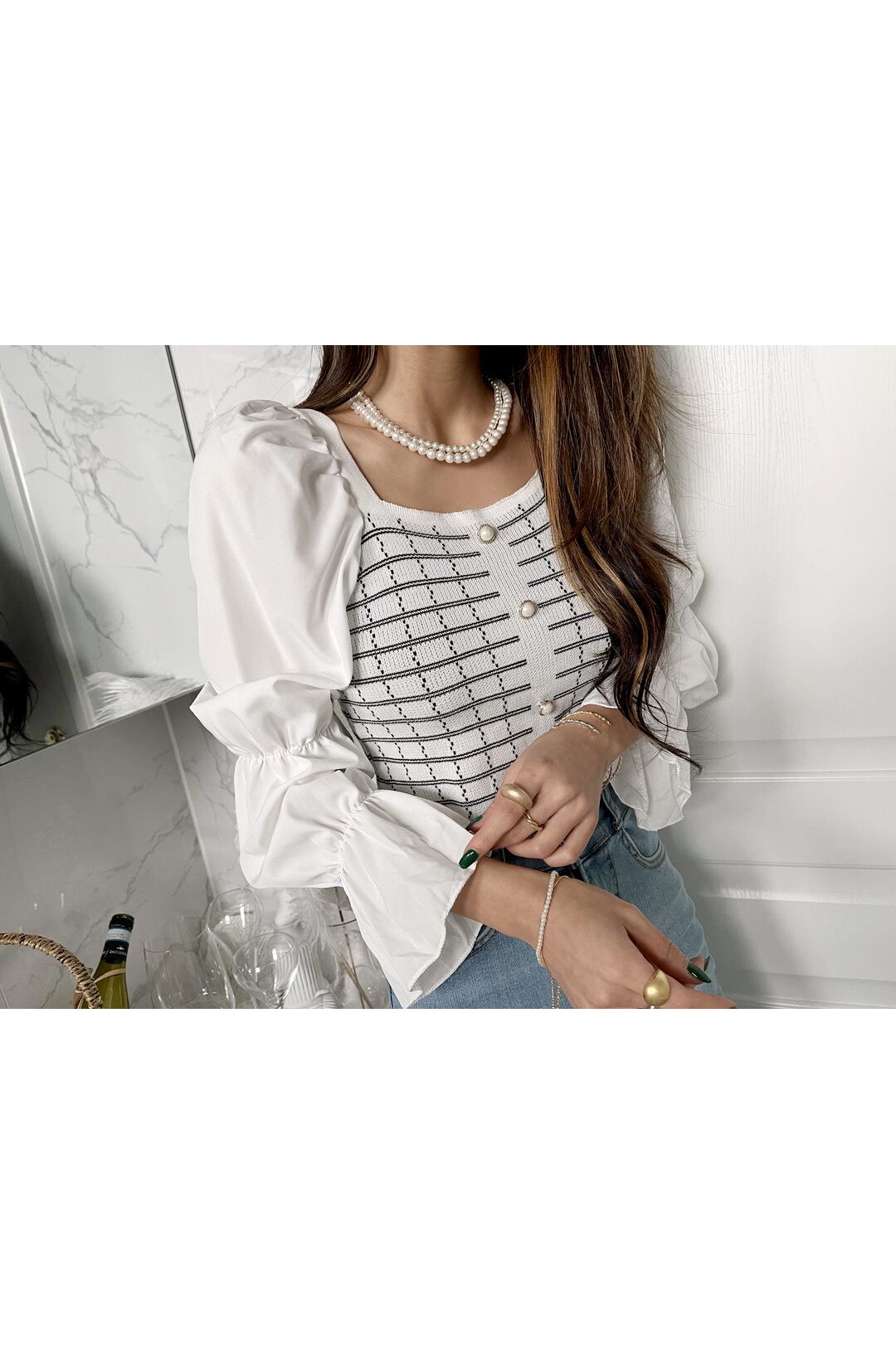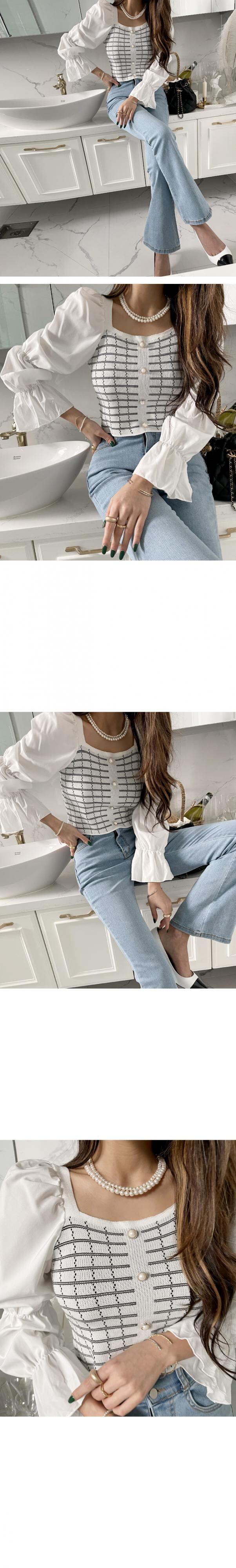 【韓国ファッション】大人可愛い カラー格子柄パールバックルスリーブセーター レディース レッド 真珠 スクウェア ステッチ ♡ 韓国80522283531 | パリジェンヌ、韓国系ファッション July