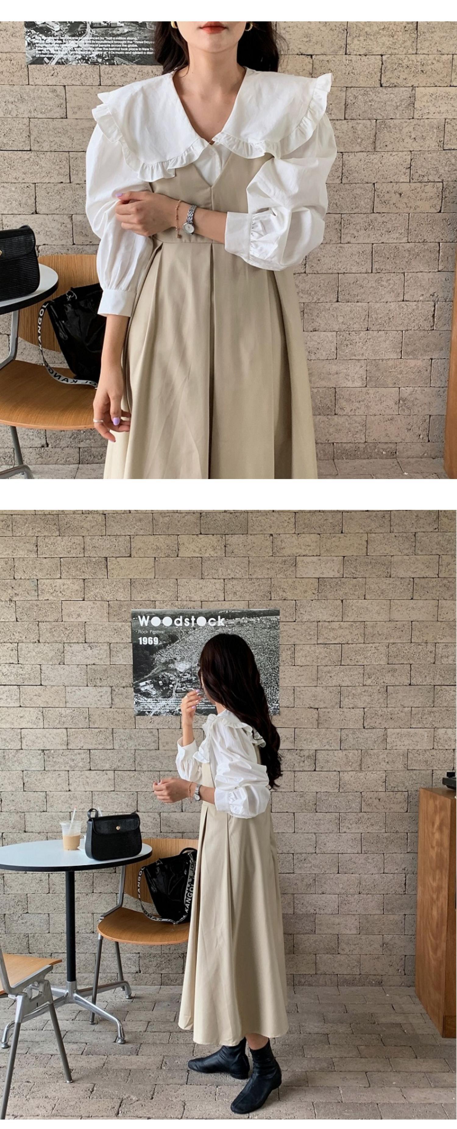 色:白のシャツ,黒のタンクスカート,アプリコットベスト