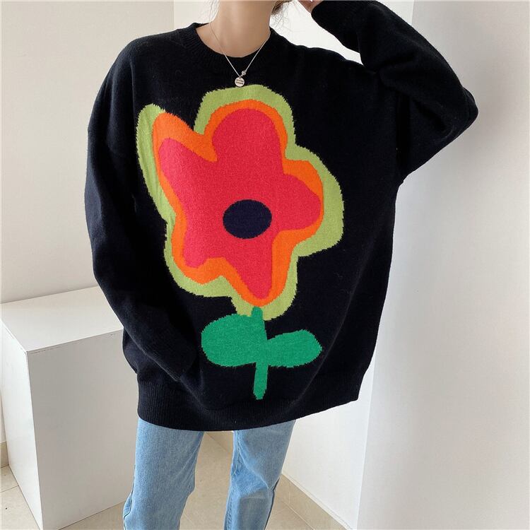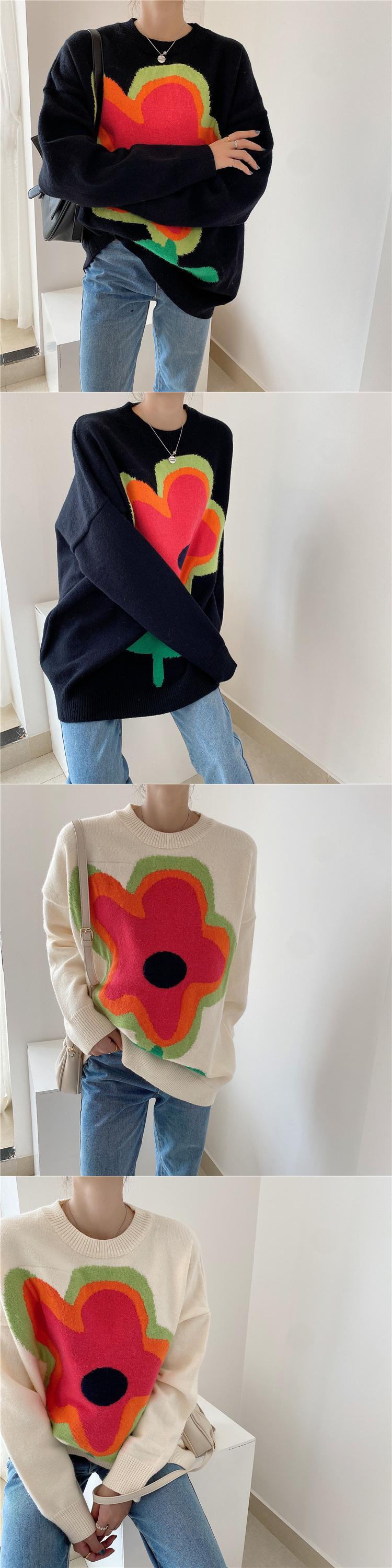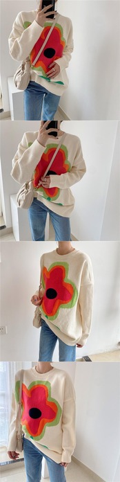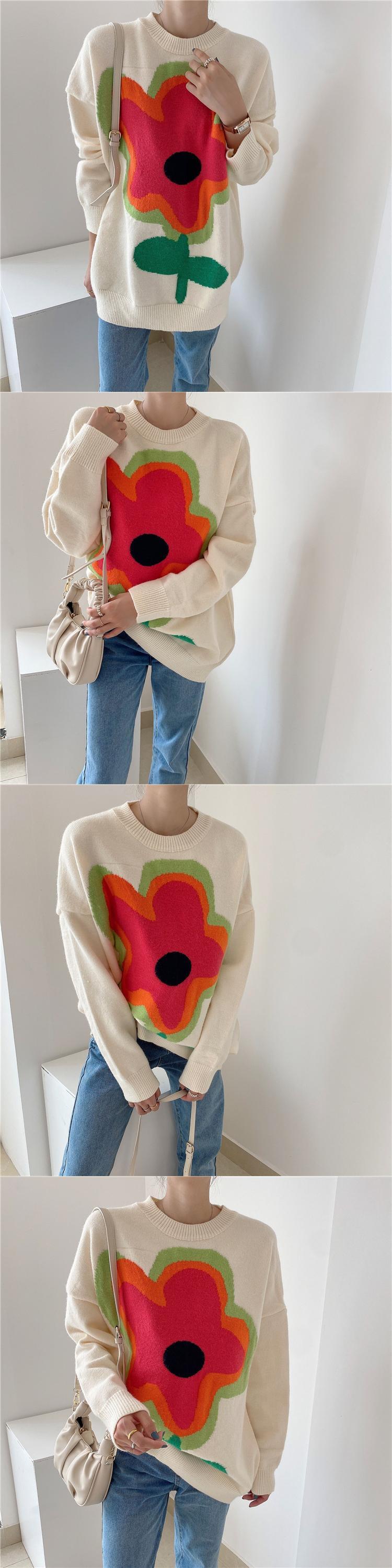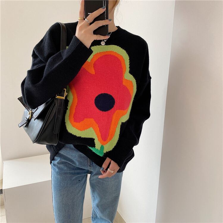 【韓国ファッション】大人可愛い オータムラウンドネックカラーFlowerデザイン ルーズカジュアルスリーブニットセーター レディース 秋物 Oネック フラワーデザイン ♡ 韓国12307787836 | パリジェンヌ、韓国系ファッション July