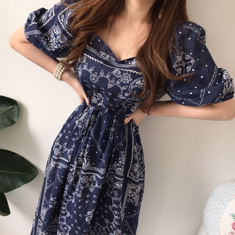 【韓国ファッション】大人可愛い サマースタンダードエスニックプリント柄薄手カラーレースウェストスリーブドレス レトロ 夏物 スクウェア ♡ 韓国47002006332 | パリジェンヌ、韓国系ファッション July