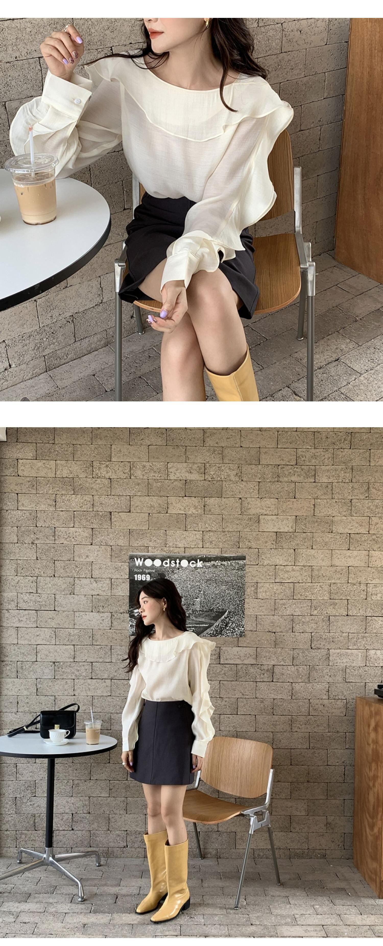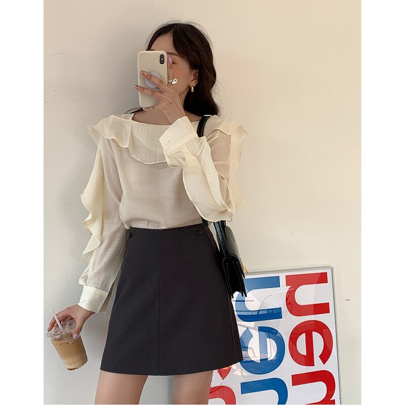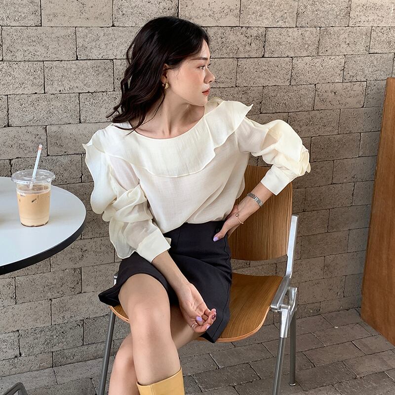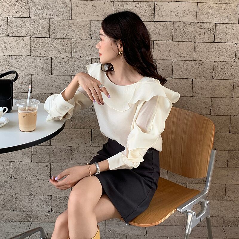 韓国服 オータムラウンドネックラッフルルーズソリッド カラーシャツ レディース ロング 秋物 Oネック ソリッドカラー ステッチ ♡ nanfeng84366746939 | パリジェンヌ、韓国系ファッション July