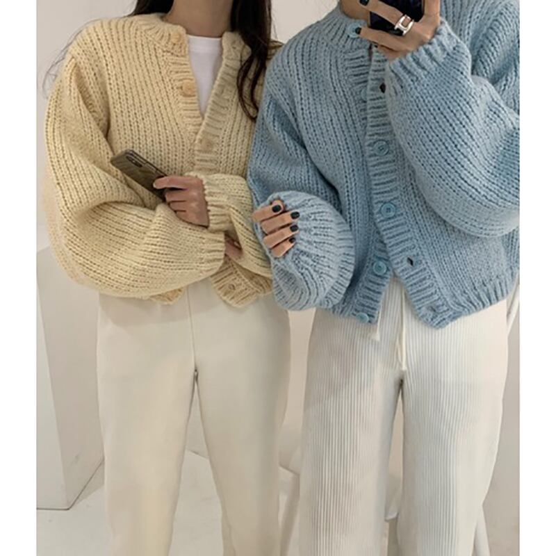 韓国服 カラーショートニットカーディガンオータムウィンターラウンドネックルーズセーター ジャケット 大人ガーリー スウィート キュート カジュアル 秋物 冬物 Oネック ♡ nanfeng62514352382 | パリジェンヌ、韓国系ファッション July