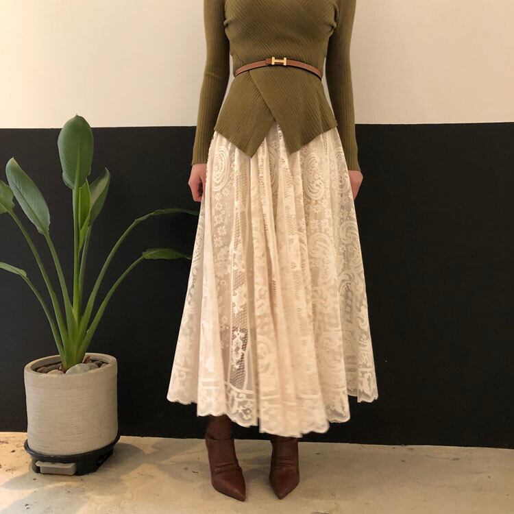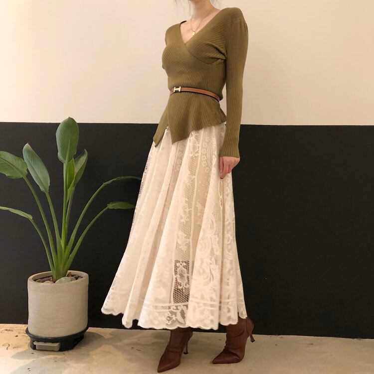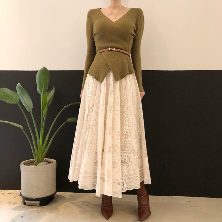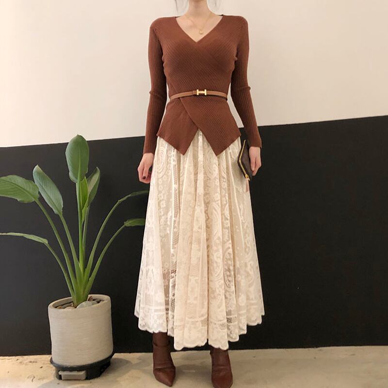 【韓国ファッション】大人可愛い スタンダードVネックニットセーター ハイウェストレーススカート ベルト レディース レトロ ハーネス ♡ 韓国62810540235 | パリジェンヌ、韓国系ファッション July